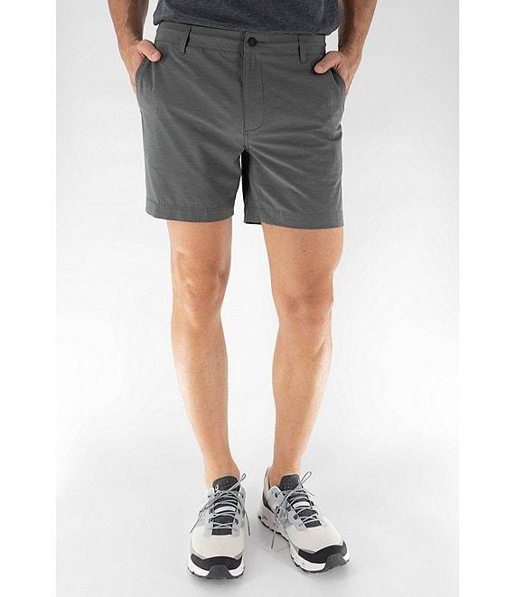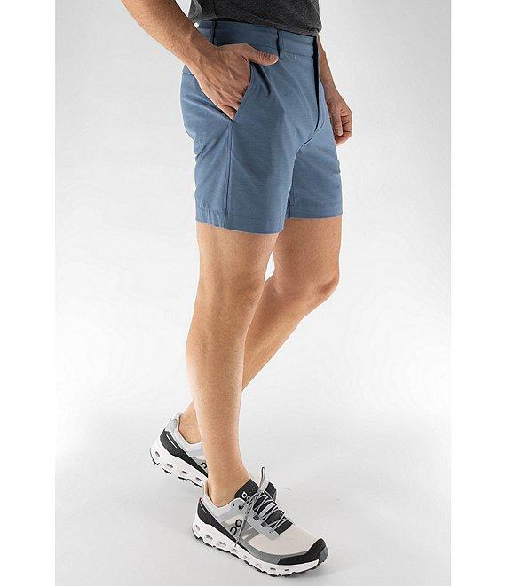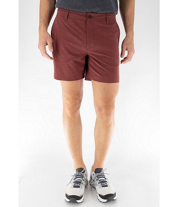 From Devil-Dog Dungarees, these shorts feature:Classic fit through the hips and thighsFlat-front stylingInterior drawcord waistbandSlash side pocketsBack-left open welt pocketZip/button-front closure with (rubber tipped zipper heads and front button)Belt loopsApprox. 6" inseamRecycled polyester/cotton/spandexMachine wash/tumble dryImported.