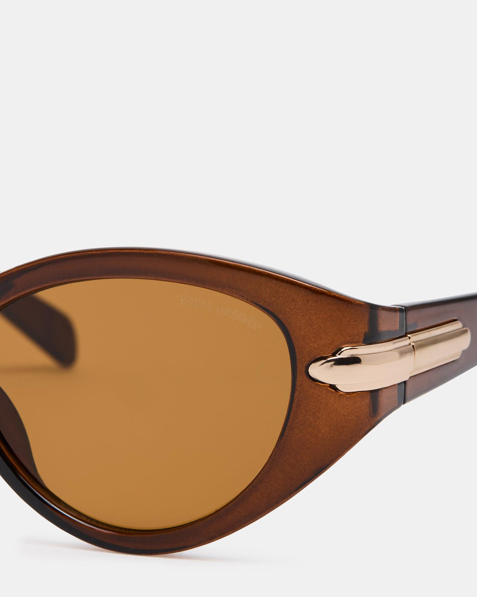 Expertly crafted with a dark brown frame and solid brown lenses, the DEVONY sunglasses offer both style and protection. These sleek sunglasses are the perfect accessory for any outdoor adventure, providing 100% UV protection while keeping you looking sharp. Dark brown frame sunglasses Lens color: Solid brown Lens/Bridge/Temple width: 50-16-136 (mm) INJECTED CP/ACRYLIC LENS Imported