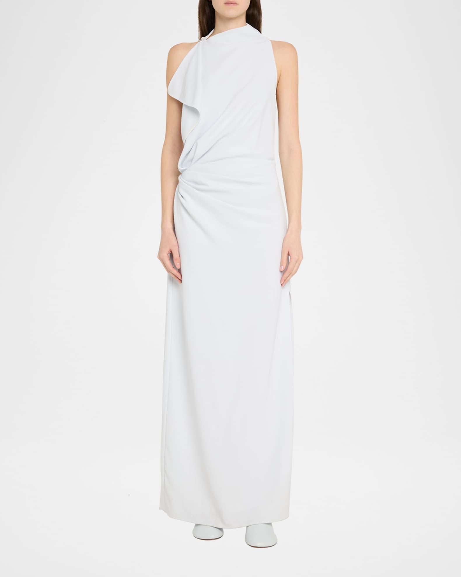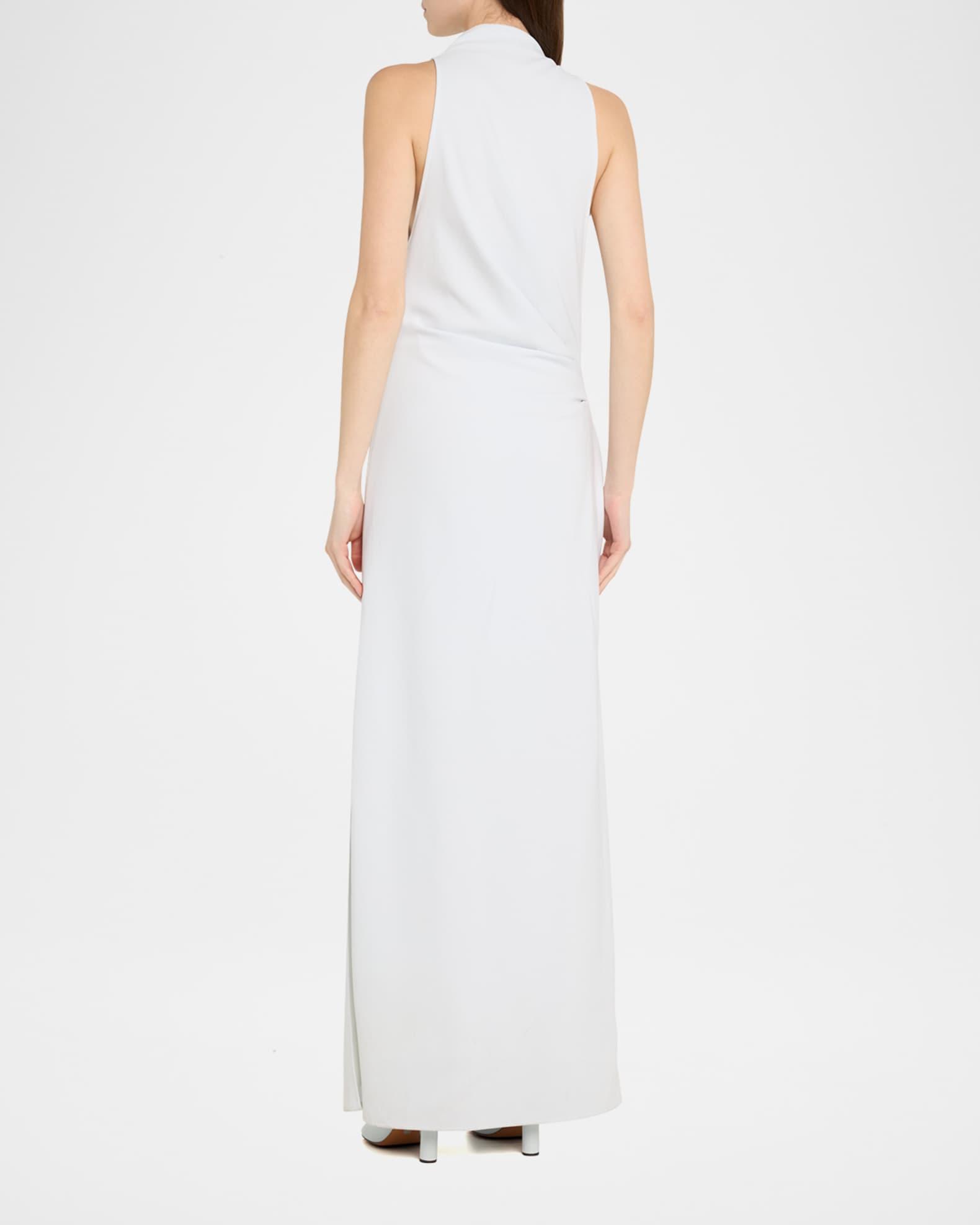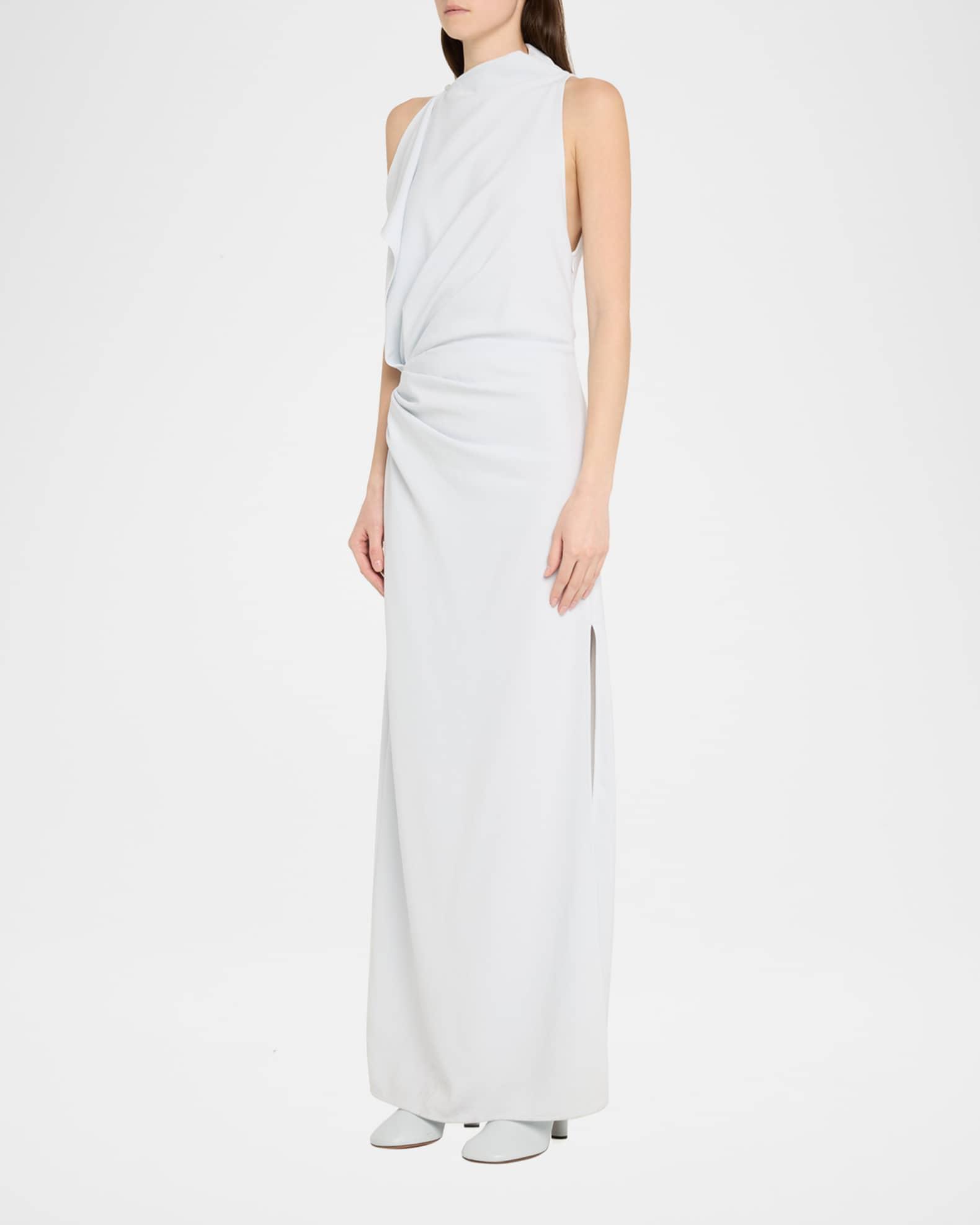 Proenza Schouler "Devyn" side draped dress crafted from matte double crepe and enhanced with drop armholes High asymmetric neckline; shoulder button closure Sleeveless Falls below the ankle Sheath silhouette Zip closure Triacetate/polyester Lining: Viscose Dry clean Imported