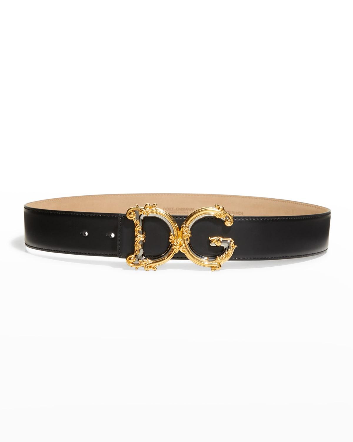 This leather belt from DOLCE & GABBANA is topped with a baroque DG buckle. Adjustable buckle Leather Made in Italy ABOUT THE BRAND Mediterranean-inspired prints and luxe silhouettes are mainstays of the Italian label, launched in 1985 by Domenico Dolce and Stefano Gabbana. The eye-catching line includes a lineup of sleek clothing and maximalist shoes and handbags. Soft Accessories - Belts > Dolce & gabbana > Saks Fifth Avenue > Barneys. Dolce & Gabbana. Color: Nero. Size: Medium.