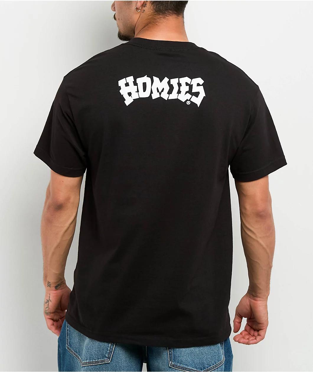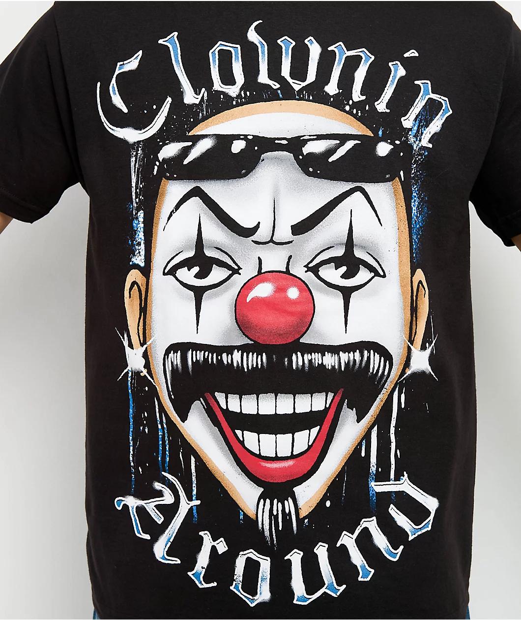 Referencing Latinx culture with a loud screen-printed graphic, the Big Face Clown t-shirt from DGA Homies arrives in a black hue. Showcasing an illustrated portrait on the front of a man with facial hair and Clown make-up, the portrait is framed by O