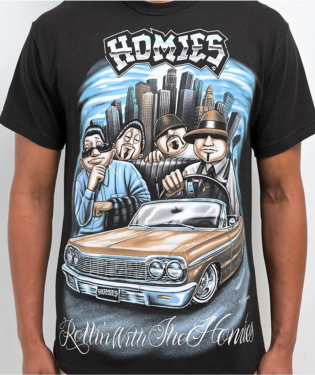 From DGA comes the Rolling With The Homies t-shirt in a black colorway made of 100% cotton for all day comfort. This style is adorned with a screen-printed graphic of four men in a low rider together and script below reading, "Rollin with the homies" whil