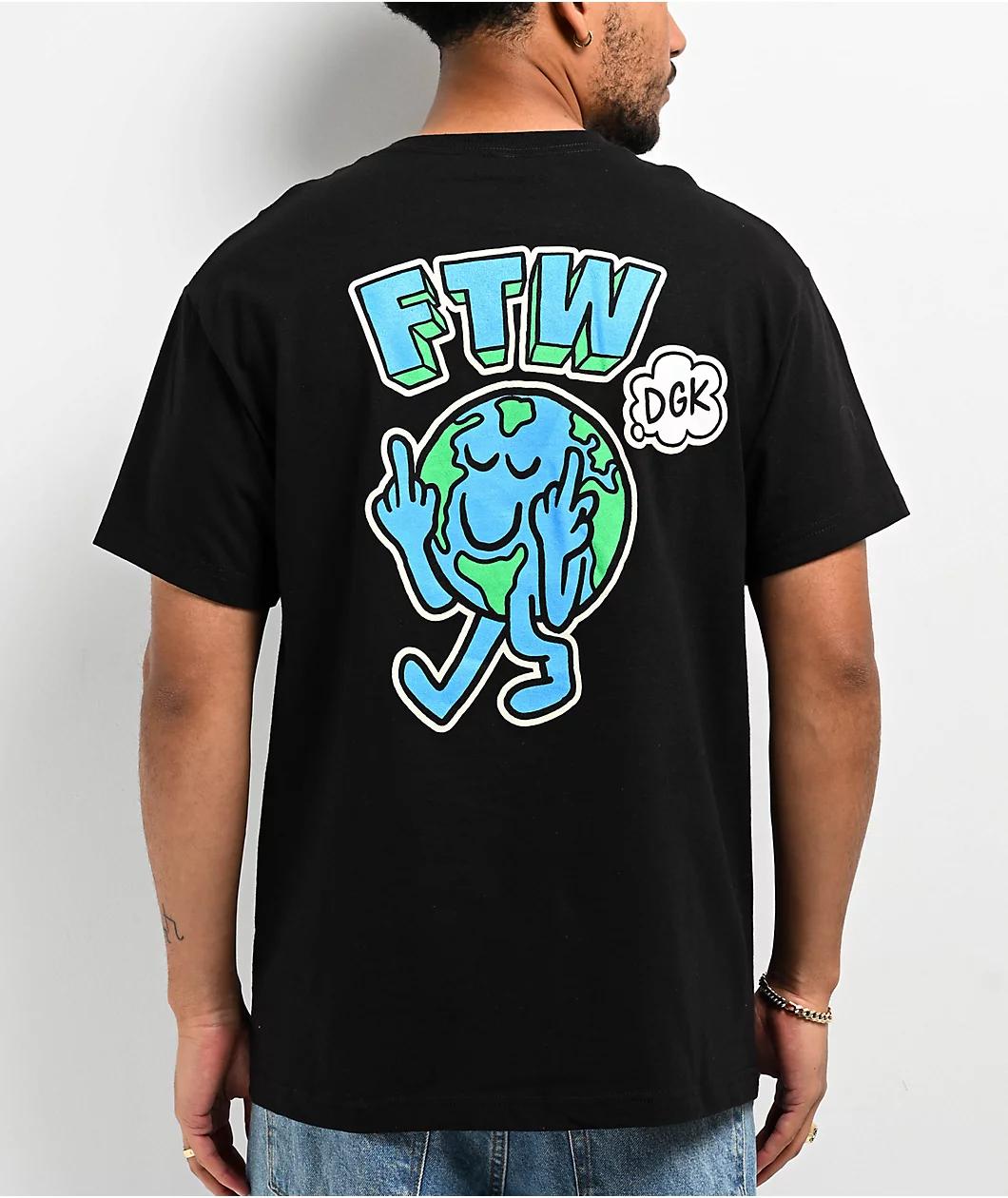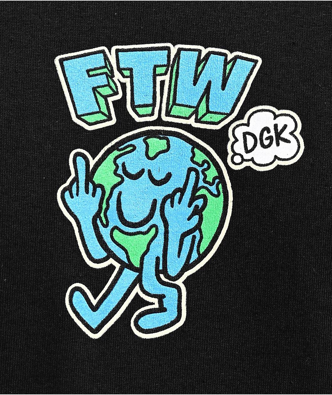 From DGK, comes the FTW t-shirt in a sleek black colorway - featuring a globe holding up middle fingers. The screen-printed design offers a graphic of a world figure and a thought bubble with "DGK" inside. This tee offers a ribbed neck collar, a non-