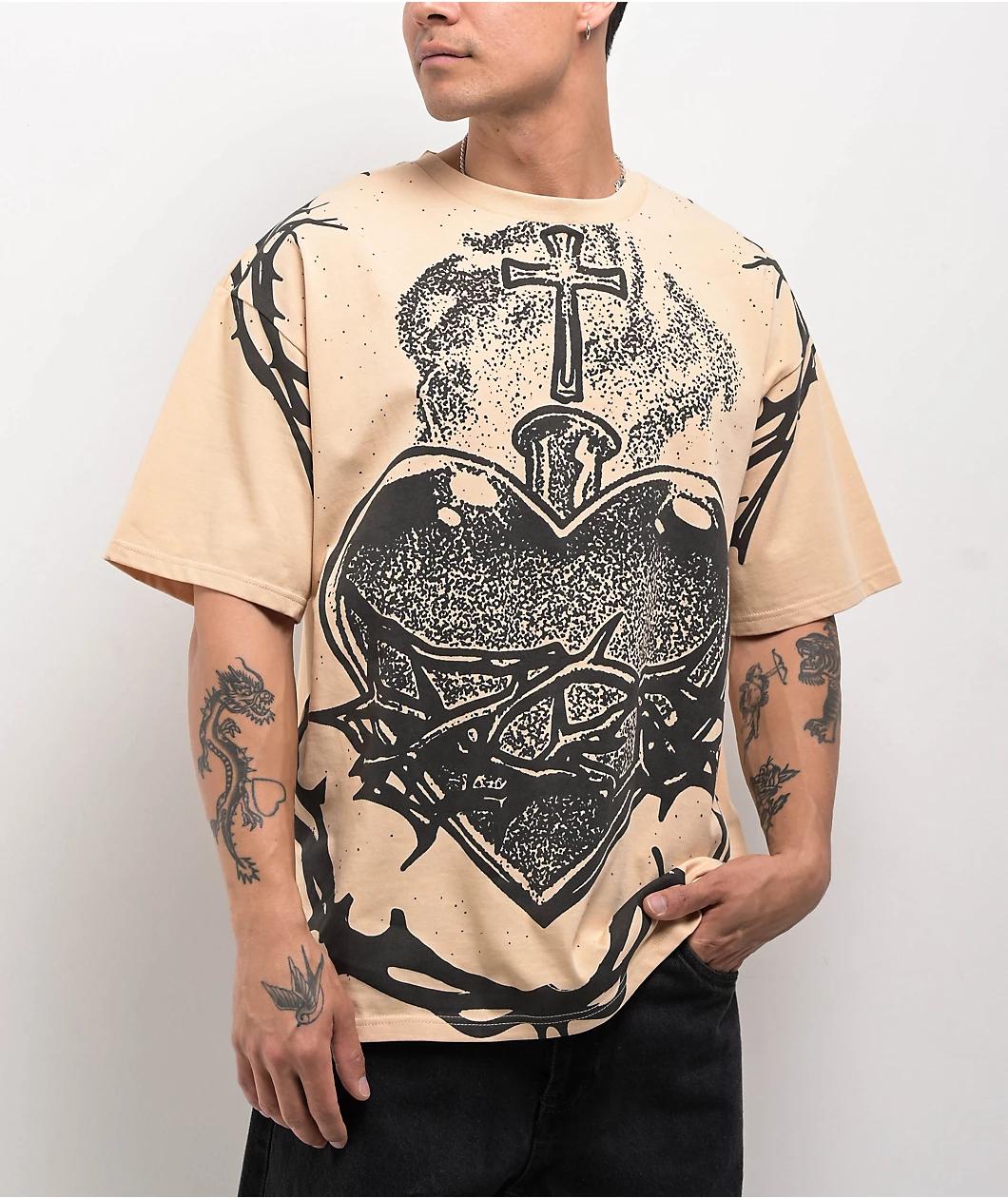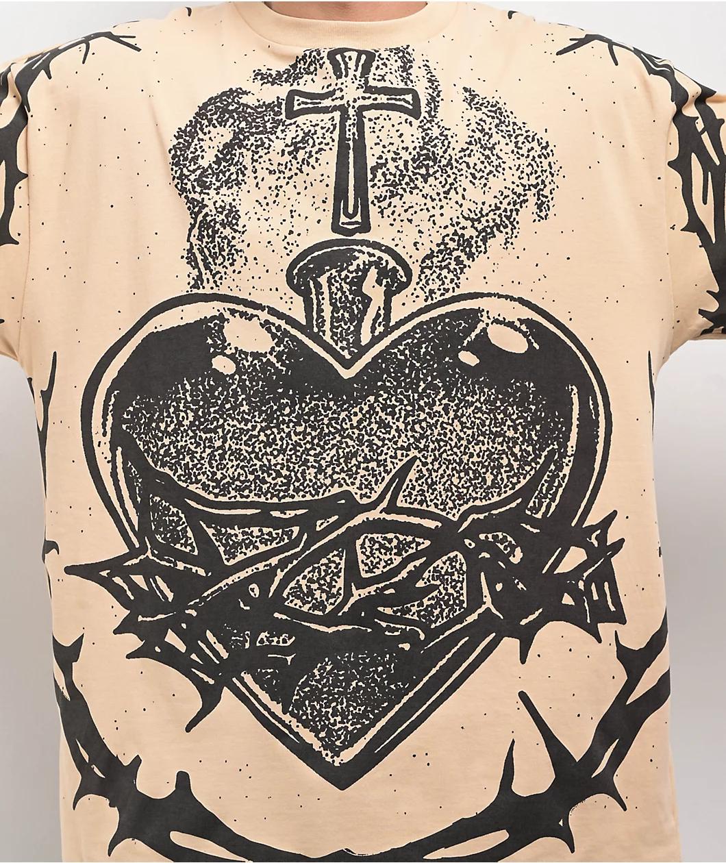 Add a devout vibe to any outfit with the Grace t-shirt from DGK. The boxy tee arrives in a tan colorway, and features artwork on the chest and sleeve of a heart surrounded by thorns. A prayer is written in an Old English script across the back to cre
