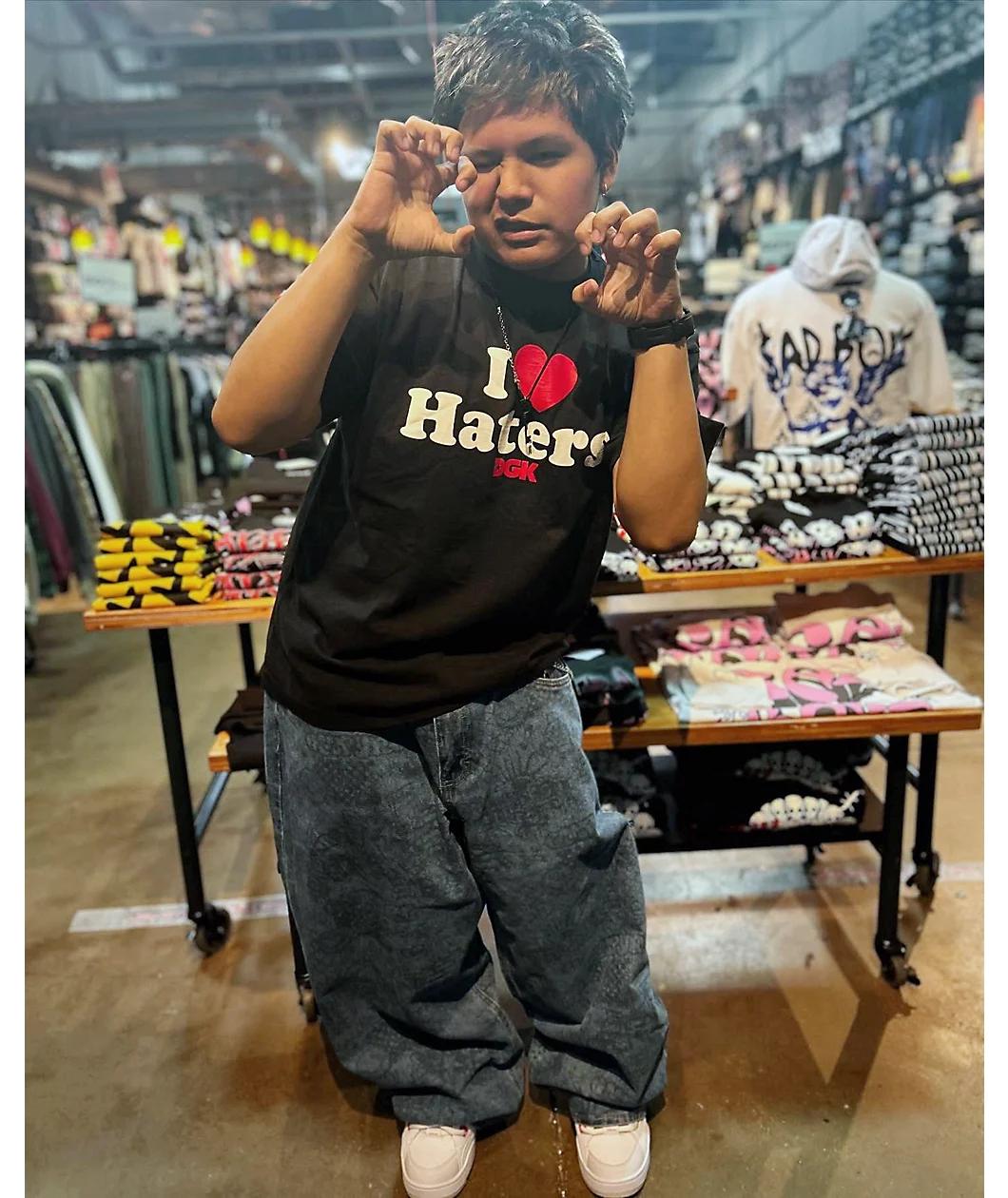 Maintaining confidence and faith with a simple text phrase, DGK re-issues the classic I Love Haters t-shirt in a vintage black 100% cotton heavyweight build with screen-printed graphics on the chest and back. Stirring up attitudes of critics with the