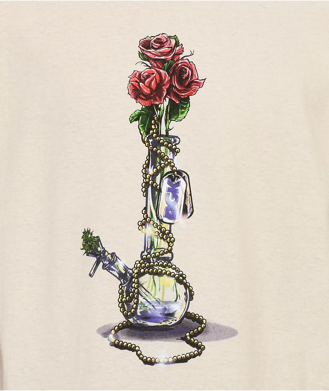 The Ornamental t-shirt from DGK comes in a natural cream cotton colorway with a relaxed fit. The shirt boasts a screen-printed graphic of a bong at the front covered in a beaded necklace with rose coming out of the top, along with DGK script.