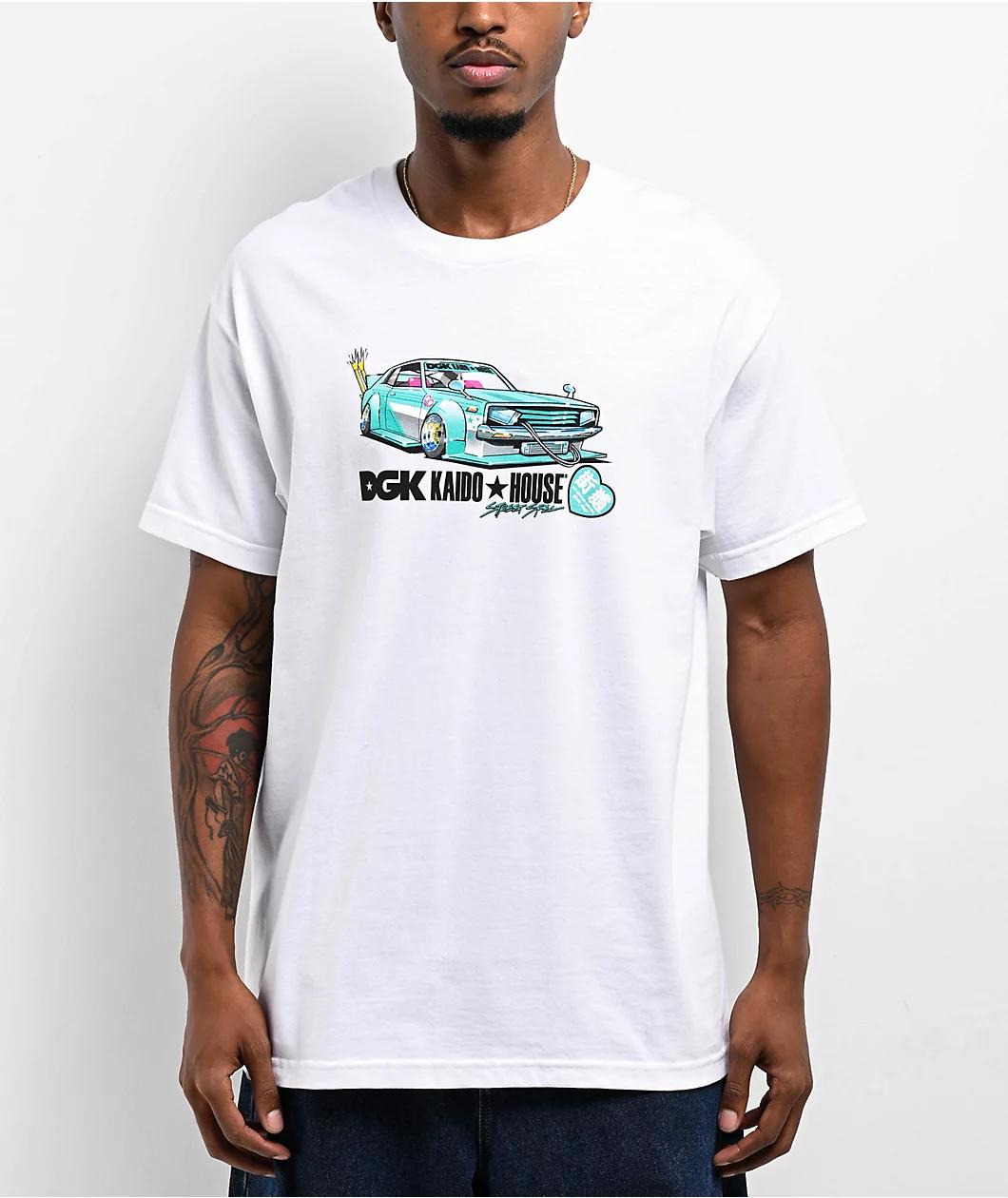 Los Angeles-based automotive lifestyle brand Kaido House and renowned skateboarding company DGK collaborate to present the Zokusha t-shirt in a clean white colorway. Delivering a JDM enthusiast look, this tee boasts screen-printed graphics on the fro