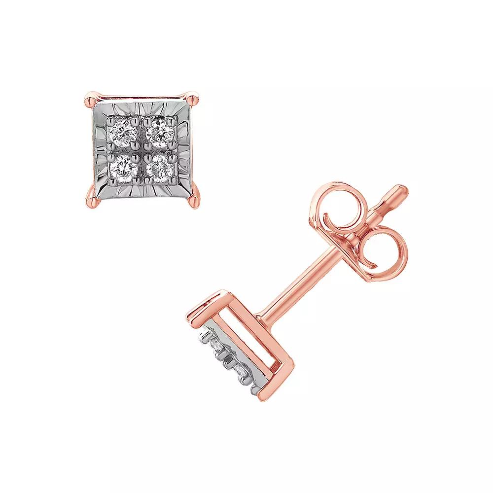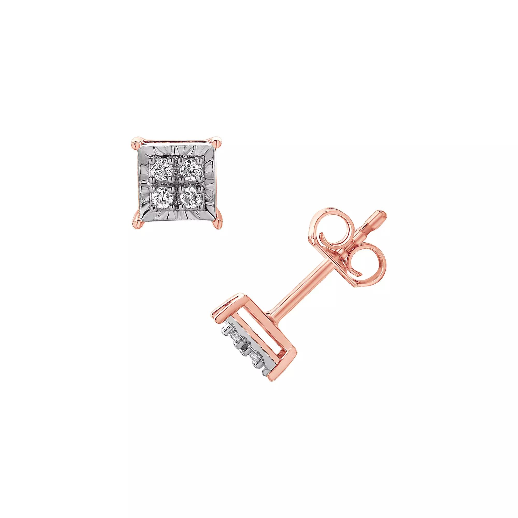 Add shimmering style to your ensemble with these Diamond Brilliance 1/10 Carat T.W. Lab-Grown Diamond Square Earrings. Click on this JEWELRY & WATCHES GUIDE to learn about fit, styles, materials and more! BENEFITS OF LAB-GROWN DIAMONDS Offer essentially the same physical, chemical and optical properties as mined diamondsLab-grown diamonds are larger, and offer a higher quality than mined diamonds of the same price Each stone is conflict-free Add shimmering style to your ensemble with these Diamond Brilliance 1/10 Carat T.W. Lab-Grown Diamond Square Earrings. Click on this JEWELRY & WATCHES GUIDE to learn about fit, styles, materials and more! BENEFITS OF LAB-GROWN DIAMONDS Offer essentially the same physical, chemical and optical properties as mined diamonds Lab-grown diamonds are larger, and offer a higher quality than mined diamonds of the same price Each stone is conflict-free FEATURES Length: 5.2 mm Backings: post Nickel free Metal: sterling silver Plating: rhodium, 14k gold flash, 14k rose gold flash Finish: polished Packaging: boxedDIAMOND DETAILS Total weight: 1/10 ct. Color grade: I Clarity: I1 Shape: round Setting: micro prong Diamond weights are approximate. Diamond Total Weights may vary between .01 and .13 ct. Some diamonds consist of fewer than 17 facets. Gemstones may have been treated to enhance their appearance. Special care may be required. Please visit our Gemstone Treatment & Special Care Guide for more information. Image(s) may be enlarged to show detail. Size: One Size. Color: Rose Tone. Gender: female. Age Group: adult.