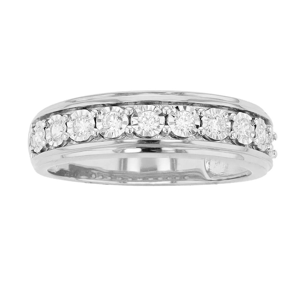 You will love the dazzling, bold design of this Diamond Brilliance 1/4 Carat T.W. Lab-Created Diamond fashion band. Click on this JEWELRY & WATCHES GUIDE to learn about fit, styles, materials and more! You will love the dazzling, bold design of this Diamond Brilliance 1/4 Carat T.W. Lab-Created Diamond fashion band. Click on this JEWELRY & WATCHES GUIDE to learn about fit, styles, materials and more! BENEFITS OF LAB-GROWN DIAMONDS Offer essentially the same physical, chemical and optical properties as mined diamonds. Lab-grown diamonds are larger, and offer a higher quality than mined diamonds of the same price. Each stone is conflict-free.FEATURES Width: 5.50 mm Shank style: straight Band fit: comfort fit Metal: sterling silver Plating: rhodium, 14k gold flash, 14k rose gold flash Finish: polished Packaging: boxed Nickel freeDIAMOND DETAILS Total weight: 1/4 ct. Color grade: I Clarity: I1 Shape: round Setting: micro prong Gemstones may have been treated to enhance their appearance. Special care may be required. Please visit our Gemstone Treatment & Special Care Guide for more information. Image(s) may be enlarged to show detail. Diamond weights are approximate. Diamond Total Weights may vary between .01 and .13 ct. Some diamonds consist of fewer than 17 facets. Size: 8. Color: White. Gender: female. Age Group: adult.