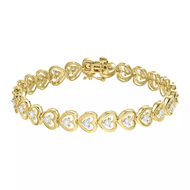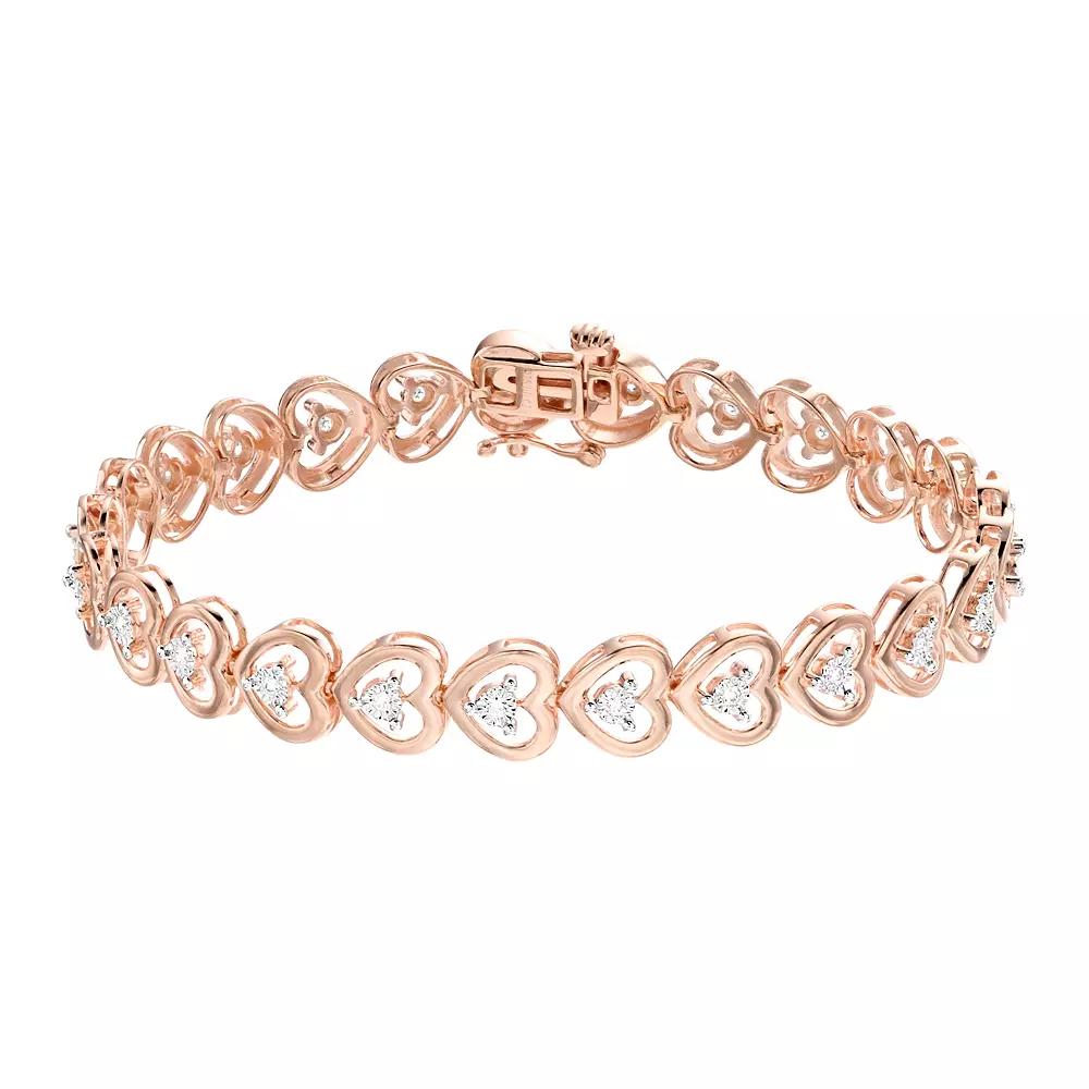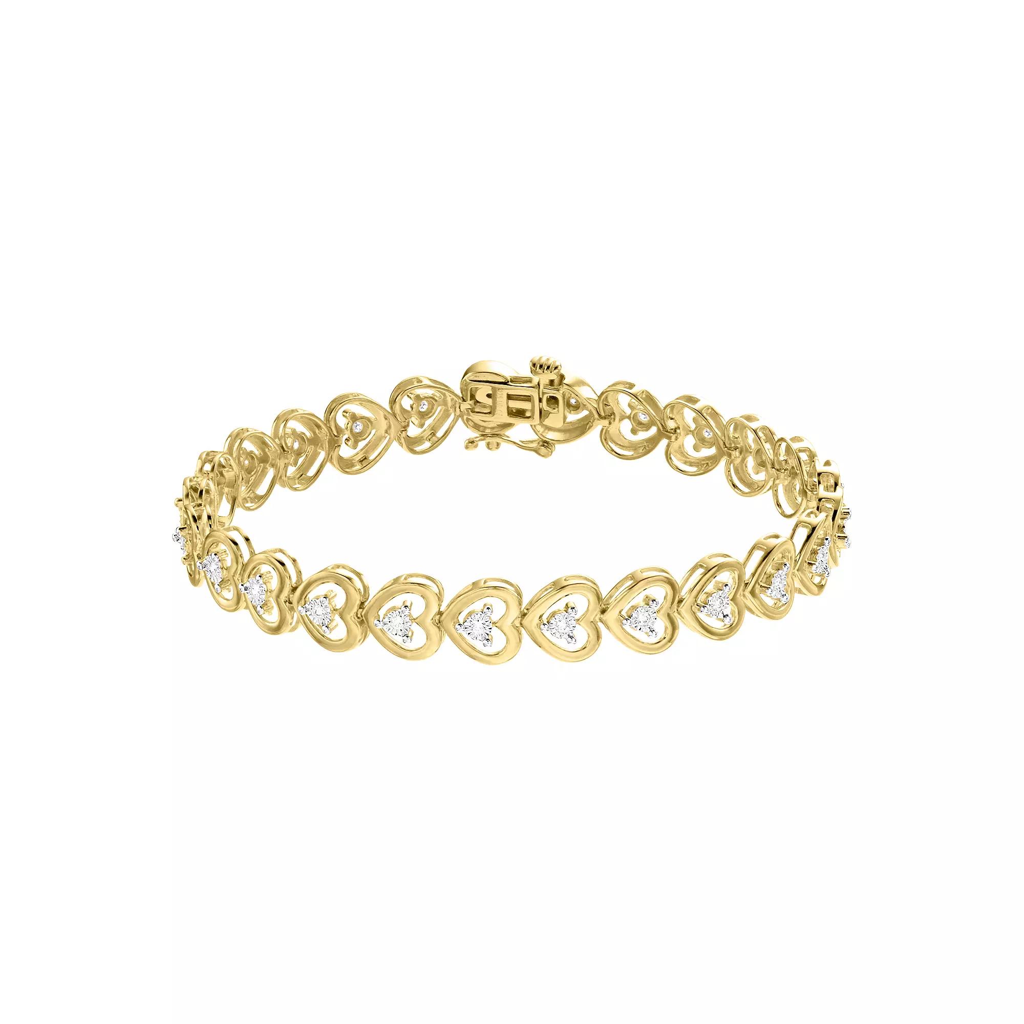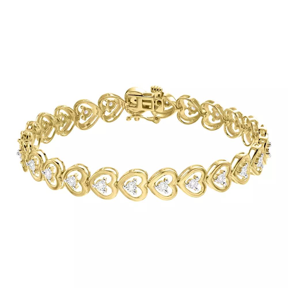 You will love the dazzling design of this 1/4 Carat T.W. Lab-Created Diamond heart bracelet by Diamond Brilliance. Click on this JEWELRY & WATCHES GUIDE to learn about fit, styles, materials and more! You will love the dazzling design of this 1/4 Carat T.W. Lab-Created Diamond heart bracelet by Diamond Brilliance. Click on this JEWELRY & WATCHES GUIDE to learn about fit, styles, materials and more! FEATURES Length: 7 in. Clasp: safety clasp Metal: sterling silver Plating: rhodium, 14k gold flash, 14k rose gold flash Finish: polished Packaging: boxed Nickel freeDIAMOND DETAILS Total weight: 1/4 ct. Shape: round Setting: prong Diamond weights are approximate. Diamond Total Weights may vary between .01 and .13 ct. Some diamonds consist of fewer than 17 facets. Gemstones may have been treated to enhance their appearance. Special care may be required. Please visit our Gemstone Treatment & Special Care Guide for more information. Image(s) may be enlarged to show detail. Size: 7. Color: White. Gender: female. Age Group: adult. Material: Gold Over Sterling.