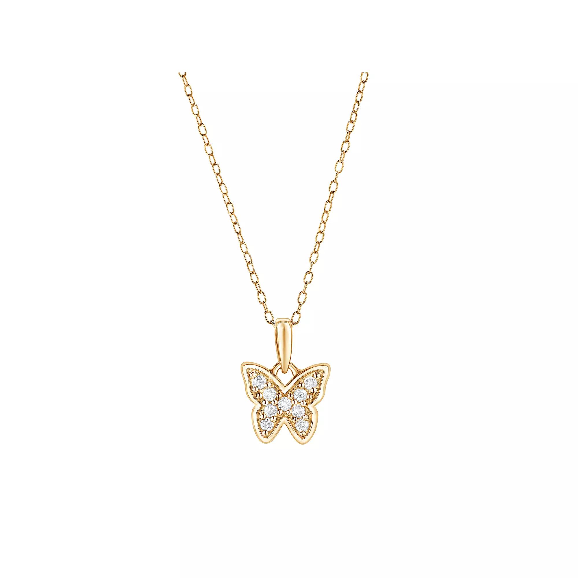 Featuring a delicate butterfly design, this lab-grown diamond pendant necklace is set in sterling silver for a playful yet sophisticated look. Perfect for layering or wearing solo. Click on this JEWELRY & WATCHES GUIDE to learn about fit, styles, materials and more! . Featuring a delicate butterfly design, this lab-grown diamond pendant necklace is set in sterling silver for a playful yet sophisticated look. Perfect for layering or wearing solo. Click on this JEWELRY & WATCHES GUIDE to learn about fit, styles, materials and more! . BENEFITS OF LAB-GROWN DIAMONDS Offer essentially the same physical, chemical and optical properties as mined diamonds Lab-grown diamonds are larger, and offer a higher quality than mined diamonds of the same price Each stone is conflict-freeFEATURES Dimensions: 9.1 mm x 8.6 mm Chain length: 18 in. Chain type: cable Nickel free Metal: sterling silver Plating: rhodium, 14k gold flash plated, 14k rose gold flash plated Finish: polished Packaging: boxedDIAMOND DETAILS Total weight: 1/10 ct. Color grade: I Clarity: I1 Shape: round Setting: prong Diamond weights are approximate. Diamond Total Weights may vary between .01 and .13 ct. Some diamonds consist of fewer than 17 facets. Gemstones may have been treated to enhance their appearance. Special care may be required. Please visit our Gemstone Treatment & Special Care Guide for more information. Image(s) may be enlarged to show detail. Size: 18". Color: Gold Tone. Gender: female. Age Group: adult.