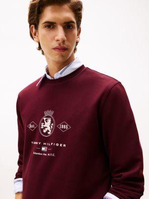 Tommy Hilfiger men's sweatshirt. Our scuba-knit crewneck sweatshirt features a sleek, smooth, and extra-soft finish that keeps you warm without the bulk — making it a cold-weather hero. The diamond TH crest graphic adds a collegiate-inspired vibe to this sporty layer.