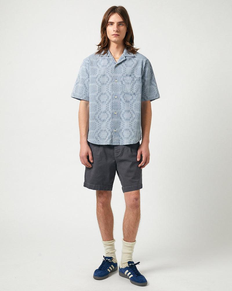 Mens Indigo-Dyed Diamond Jacquard Button-Front Shirt