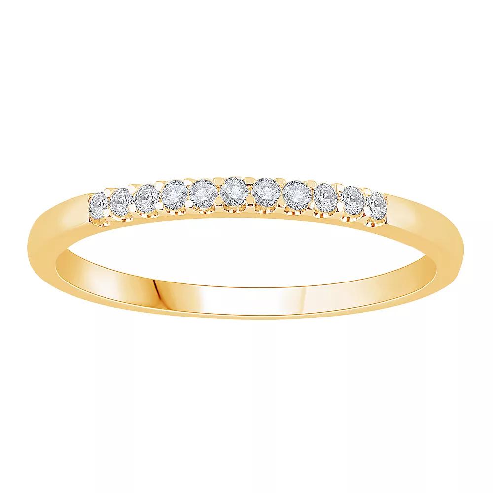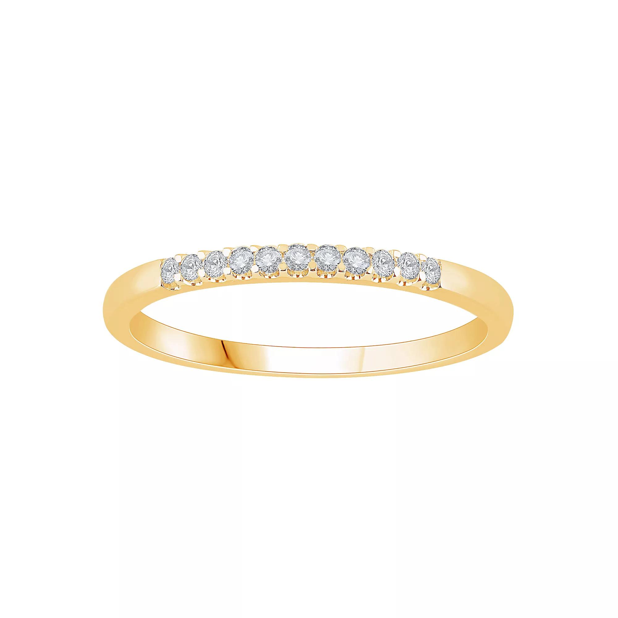 Adorn yourself with the timeless beauty of this Diamond Medley ring. This exquisite ring features a row of stunning, lab-grown diamonds. Click on this JEWELRY & WATCHES GUIDE to learn about fit, styles, materials and more! BENEFITS OF LAB-GROWN DIAMONDS Offer essentially the same physical, chemical and optical properties as mined diamondsLab-grown diamonds are larger, and offer a higher quality than mined diamonds of the same price Each stone is conflict-free Adorn yourself with the timeless beauty of this Diamond Medley ring. This exquisite ring features a row of stunning, lab-grown diamonds. Click on this JEWELRY & WATCHES GUIDE to learn about fit, styles, materials and more! BENEFITS OF LAB-GROWN DIAMONDS Offer essentially the same physical, chemical and optical properties as mined diamonds Lab-grown diamonds are larger, and offer a higher quality than mined diamonds of the same price Each stone is conflict-free FEATURES Width: 1.65 mm Shank style: straight Band fit: comfort fit Metal: 14k gold Plating: rhodium Finish: polished Packaging: boxedDIAMOND DETAILS Total weight: 1/10 ct. Color grade: I Clarity: VS Shape: round Setting: prong Diamond weights are approximate. Diamond Total Weights may vary between .01 and .13 ct. Some diamonds consist of fewer than 17 facets. Gemstones may have been treated to enhance their appearance. Special care may be required. Please visit our Gemstone Treatment & Special Care Guide for more information. Image(s) may be enlarged to show detail. Please note, due to the high value of this item, a signature may be required upon delivery. Color: White. Gender: female. Age Group: adult.