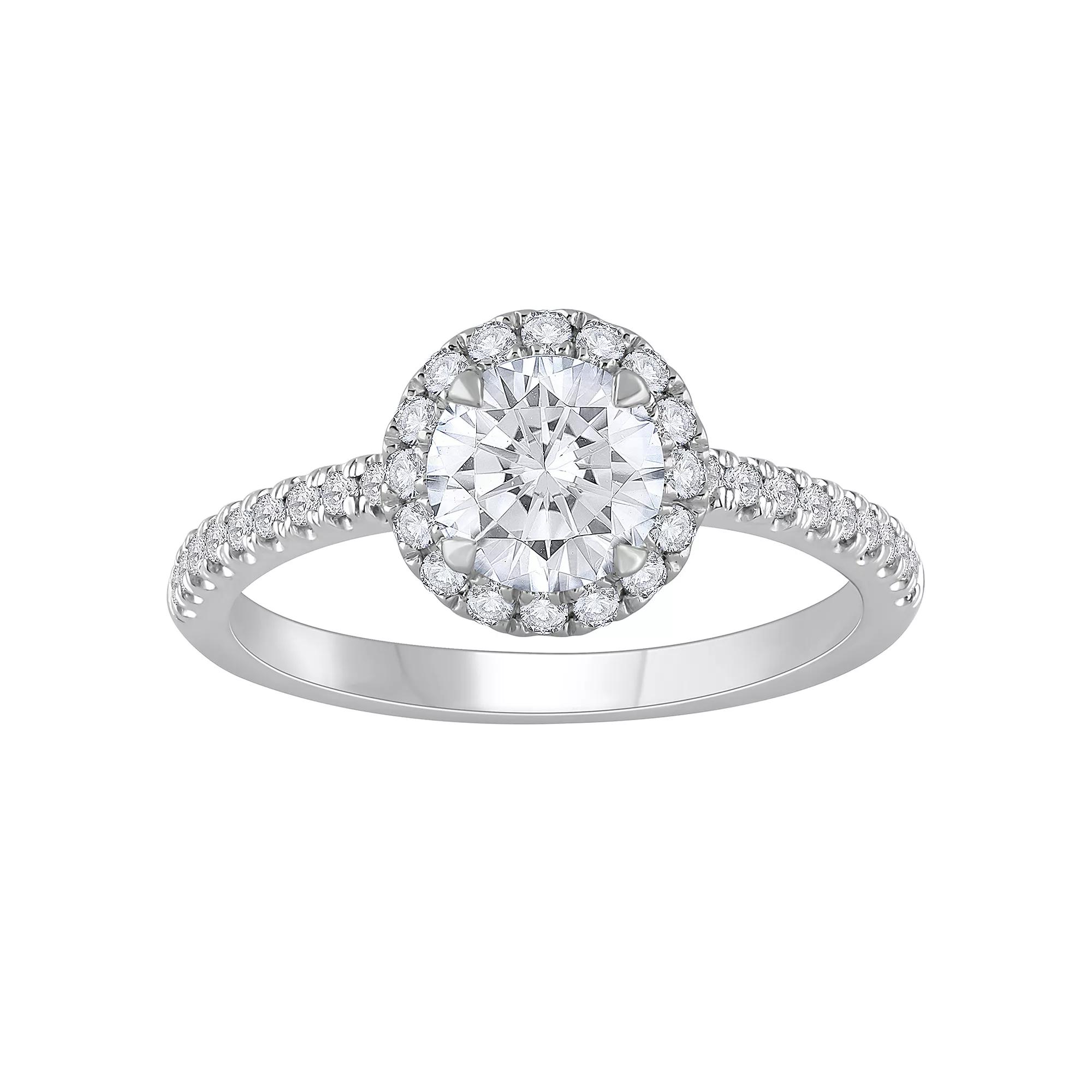Diamond Brilliance 14k White Gold 1 1/3 Carat T.W. Lab-Grown Diamond Round Center Halo Engagement Ring, Women's,