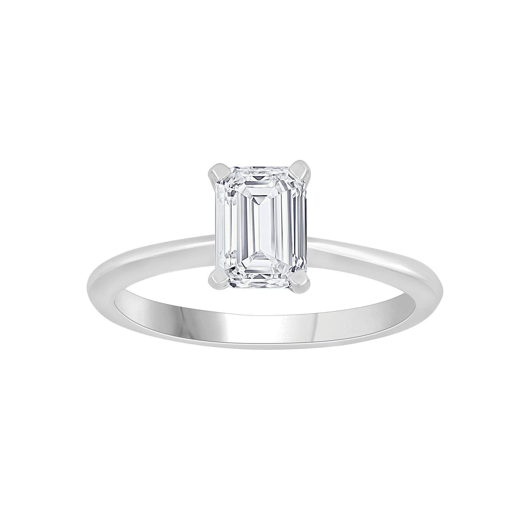 Elegance abounds with this Diamond Medley 14k White Gold 2 Carat T.W. lab-grown diamond solitaire ring. Click on this JEWELRY & WATCHES GUIDE to learn about fit, styles, materials and more! Elegance abounds with this Diamond Medley 14k White Gold 2 Carat T.W. lab-grown diamond solitaire ring. Click on this JEWELRY & WATCHES GUIDE to learn about fit, styles, materials and more! BENEFITS OF LAB-GROWN DIAMONDS Offer essentially the same physical, chemical and optical properties as mined diamonds. Lab-grown diamonds are larger, and offer a higher quality than mined diamonds of the same price. Each stone is conflict-free.FEATURES Width: 10.4 mm Shank style: straight Band fit: comfort fit Metal: 14k white gold Plating: rhodium Finish: polished Packaging: boxedDIAMOND DETAILS Total weight: 2 ct. Color grade: I Clarity: VS Shape: emerald cut Setting: prong Gemstones may have been treated to enhance their appearance. Special care may be required. Please visit our Gemstone Treatment & Special Care Guide for more information. Diamond equivalent carat (ct.) Total Weight (T.W.) represents the approximate total weight of diamonds of equivalent appearance. Image(s) may be enlarged to show detail. Please note, due to the high value of this item, a signature may be required upon delivery. Size: 9. Gender: female. Age Group: adult.