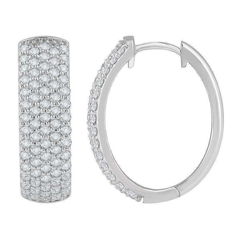 Add an elegant finishing touch to any ensemble with these 14k white gold Diamond Medley lab-created diamond pave hoop earrings. Click on this JEWELRY & WATCHES GUIDE to learn about fit, styles, materials and more! Add an elegant finishing touch to any ensemble with these 14k white gold Diamond Medley lab-created diamond pave hoop earrings. Click on this JEWELRY & WATCHES GUIDE to learn about fit, styles, materials and more! FEATURES Diameter: 22.2 mm Backings: post Metal: 14k white gold Plating: rhodium Finish: polished Packaging: boxedLAB-GROWN DIAMOND DETAILS Total weight: 2 ct. Color grade: I Clarity grade: LABSI Shape: round Setting: prong Diamond equivalent carat (ct.) Total Weight (T.W.) represents the approximate total weight of diamonds of equivalent appearance. Gemstones may have been treated to enhance their appearance. Special care may be required. Please visit our Gemstone Treatment & Special Care Guide for more information. Image(s) may be enlarged to show detail. Please note, due to the high value of this item, a signature may be required upon delivery. Size: One Size. Gender: female. Age Group: adult.
