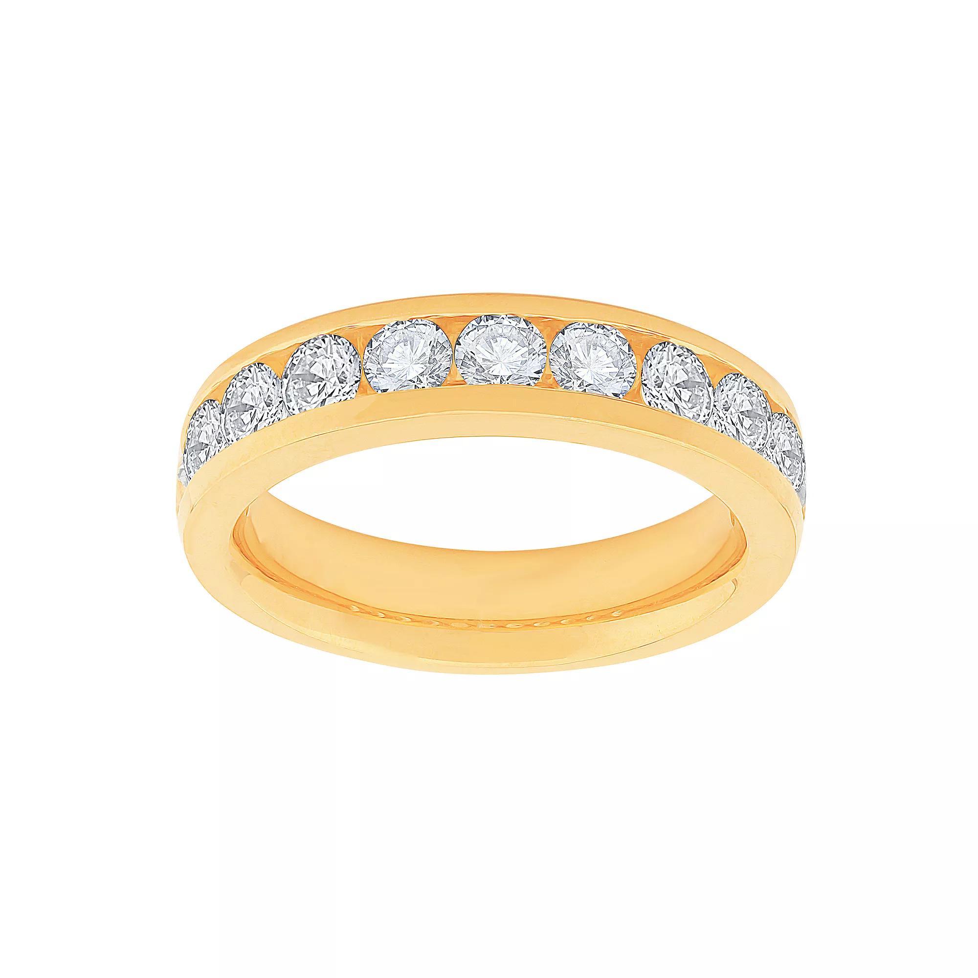 Elegance abounds with this Diamond Medley 14k Yellow Gold 1 1/2 Carat T.W. lab-grown diamond ring. Click on this JEWELRY & WATCHES GUIDE to learn about fit, styles, materials and more! Elegance abounds with this Diamond Medley 14k Yellow Gold 1 1/2 Carat T.W. lab-grown diamond ring. Click on this JEWELRY & WATCHES GUIDE to learn about fit, styles, materials and more! BENEFITS OF LAB-GROWN DIAMONDS Offer essentially the same physical, chemical and optical properties as mined diamonds. Lab-grown diamonds are larger, and offer a higher quality than mined diamonds of the same price. Each stone is conflict-free.FEATURES Width: 4.65 mm Shank style: straight Band fit: comfort fit Metal: 14k gold Finish: polished Packaging: boxedDIAMOND DETAILS Total weight: 1 1/2 ct. Color grade: I Clarity: VS Shape: round Setting: channel Gemstones may have been treated to enhance their appearance. Special care may be required. Please visit our Gemstone Treatment & Special Care Guide for more information. Diamond equivalent carat (ct.) Total Weight (T.W.) represents the approximate total weight of diamonds of equivalent appearance. Image(s) may be enlarged to show detail. Please note, due to the high value of this item, a signature may be required upon delivery. Size: 7. Color: White. Gender: female. Age Group: adult.