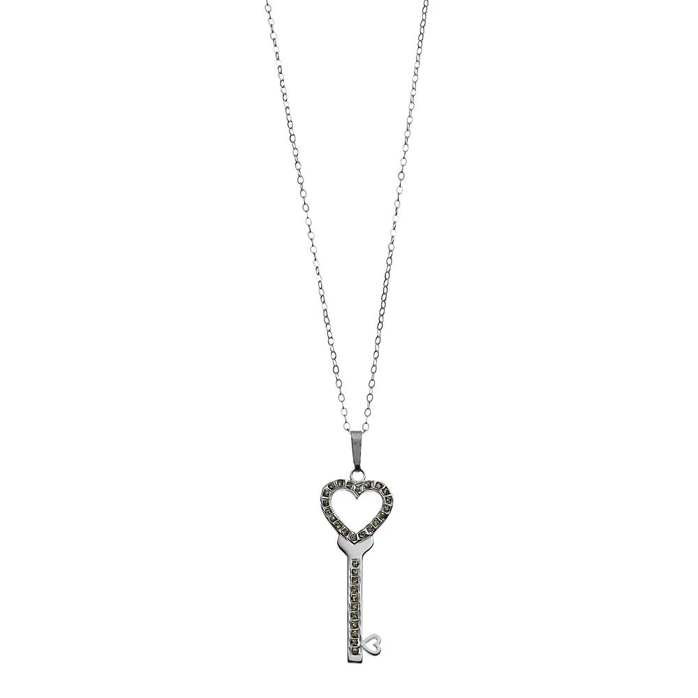 Complete your ensemble with this Diamond Mystique heart key pendant necklace, crafted with platinum over sterling silver and diamond accents. Complete your ensemble with this Diamond Mystique heart key pendant necklace, crafted with platinum over sterling silver and diamond accents. Clasp: spring-ring Nickel free Metal: sterling silver Length: 18 in. Packaging: boxed Plating: platinum Finish: polished Pendant size: 43 mm x 13 mm Chain type: cable Diamond weights are approximate. Diamond Total Weights may vary between .01 and .13 ct. Some diamonds consist of fewer than 17 facets. Gemstones may have been treated to enhance their appearance. Special care may be required. Please visit our Gemstone Treatment & Special Care Guide for more information. Image(s) may be enlarged to show detail. Please note, due to the high value of this item, a signature may be required upon delivery. Size: 18". Color: White. Gender: female. Age Group: adult. Material: Platinum Over Silver.