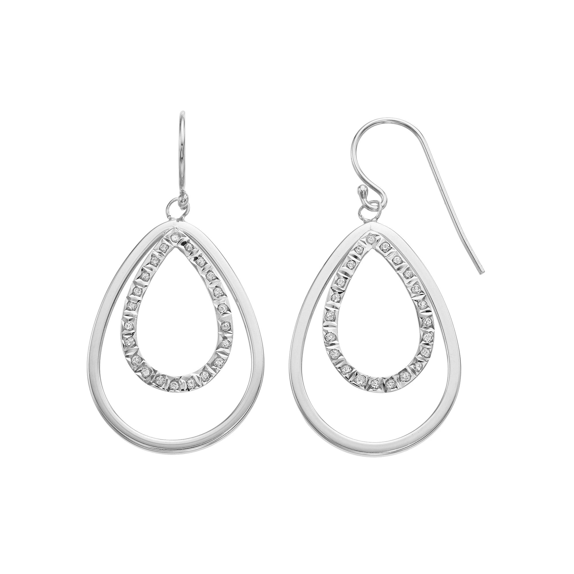 Accessorize in style with these Diamond Mystique Sterling Silver Diamond Accent Double Teardrop Earrings. Click on this JEWELRY & WATCHES GUIDE to learn about fit, styles, materials and more! Accessorize in style with these Diamond Mystique Sterling Silver Diamond Accent Double Teardrop Earrings. Click on this JEWELRY & WATCHES GUIDE to learn about fit, styles, materials and more! FEATURES Dimensions: 26 mm x 20 mm Backings: wire Nickel free Metal: sterling silver Plating: platinum Finish: polished Packaging: boxedDIAMOND DETAILS Total weight: less than 1/10 ct. Shape: round Gemstones may have been treated to enhance their appearance. Special care may be required. Please visit our Gemstone Treatment & Special Care Guide for more information. Diamond weights are approximate. Diamond Total Weights may vary between .01 and .13 ct. Some diamonds consist of fewer than 17 facets. Image(s) may be enlarged to show detail. Size: One Size. Color: White. Gender: female. Age Group: adult.