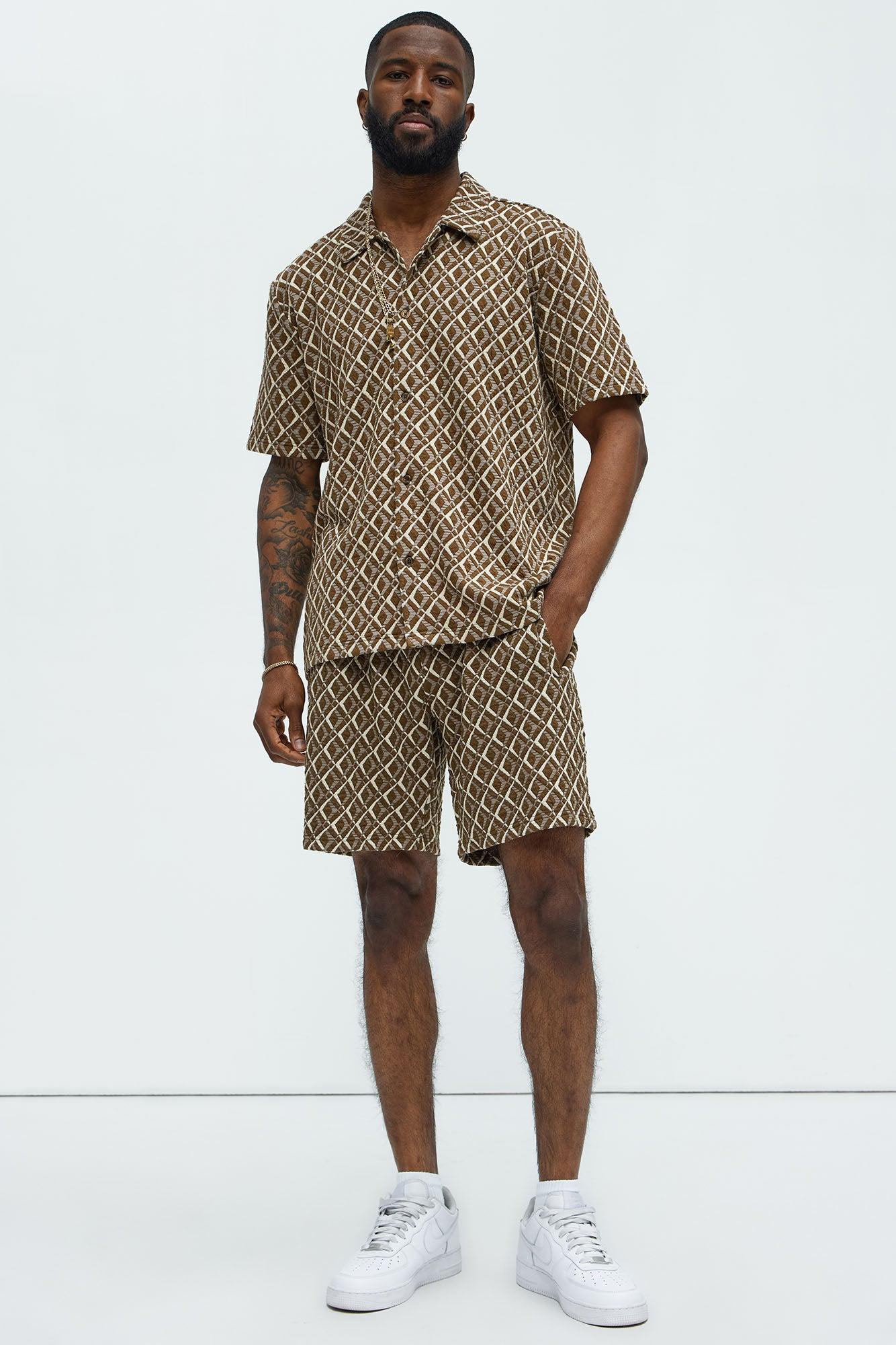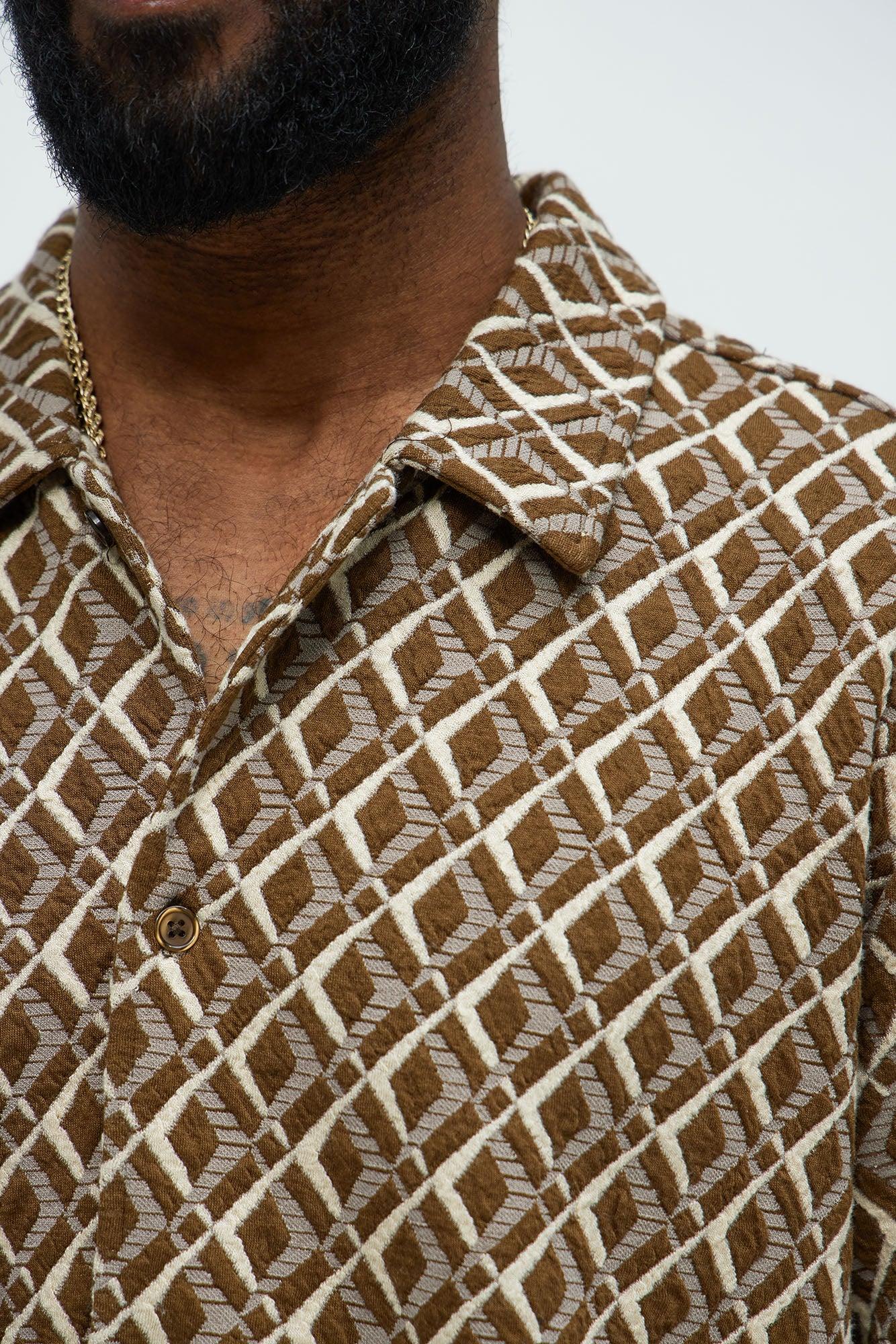Available In Brown/combo. Fold Down Collar Front Button Closure Short Sleeve Pair With "Diamonds Relaxed Shorts" 67% Polyester 30% Viscose 3% Elastane Imported