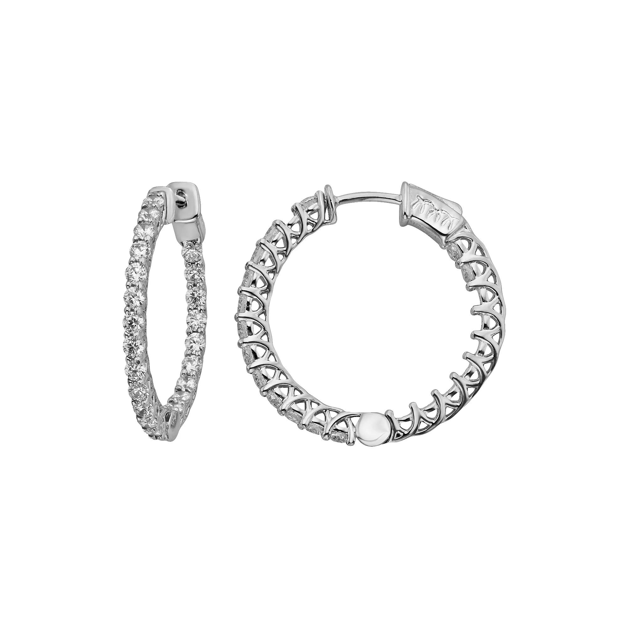 Earring Details: Diameter: 1 in. Closures: leverback Metal: rhodium-plated sterling silver Diamonore Details: Total weight: 2 ct. Cut: round Setting: prong Diamond equivalent carat (ct.) Total Weight (T.W.) represents the approximate total weight of diamonds of equivalent appearance. Size: One Size. Color: White. Gender: female. Age Group: adult.