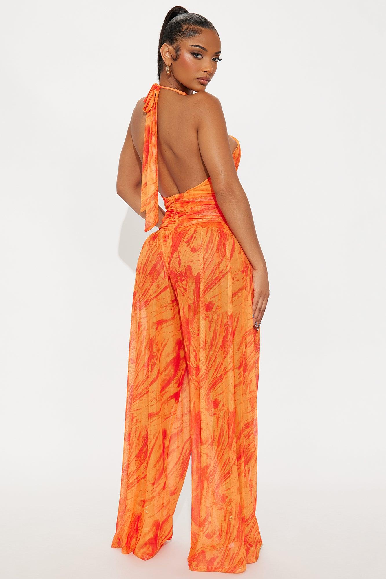 Dianna Mesh Halter Jumpsuit - Orange Female