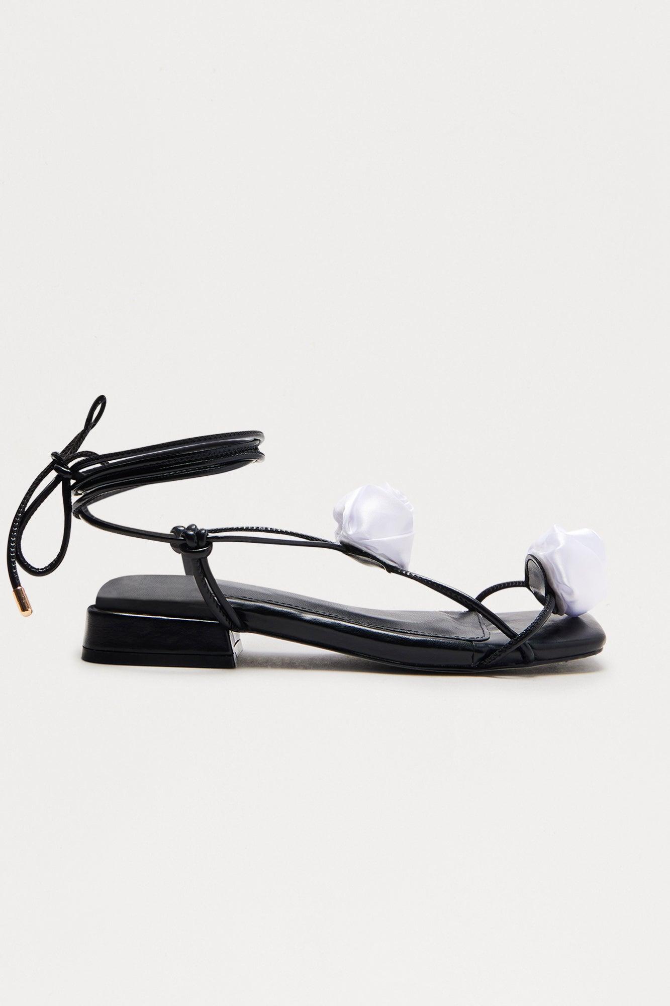 Diara Flower Wrap Up Sandals - Black/White