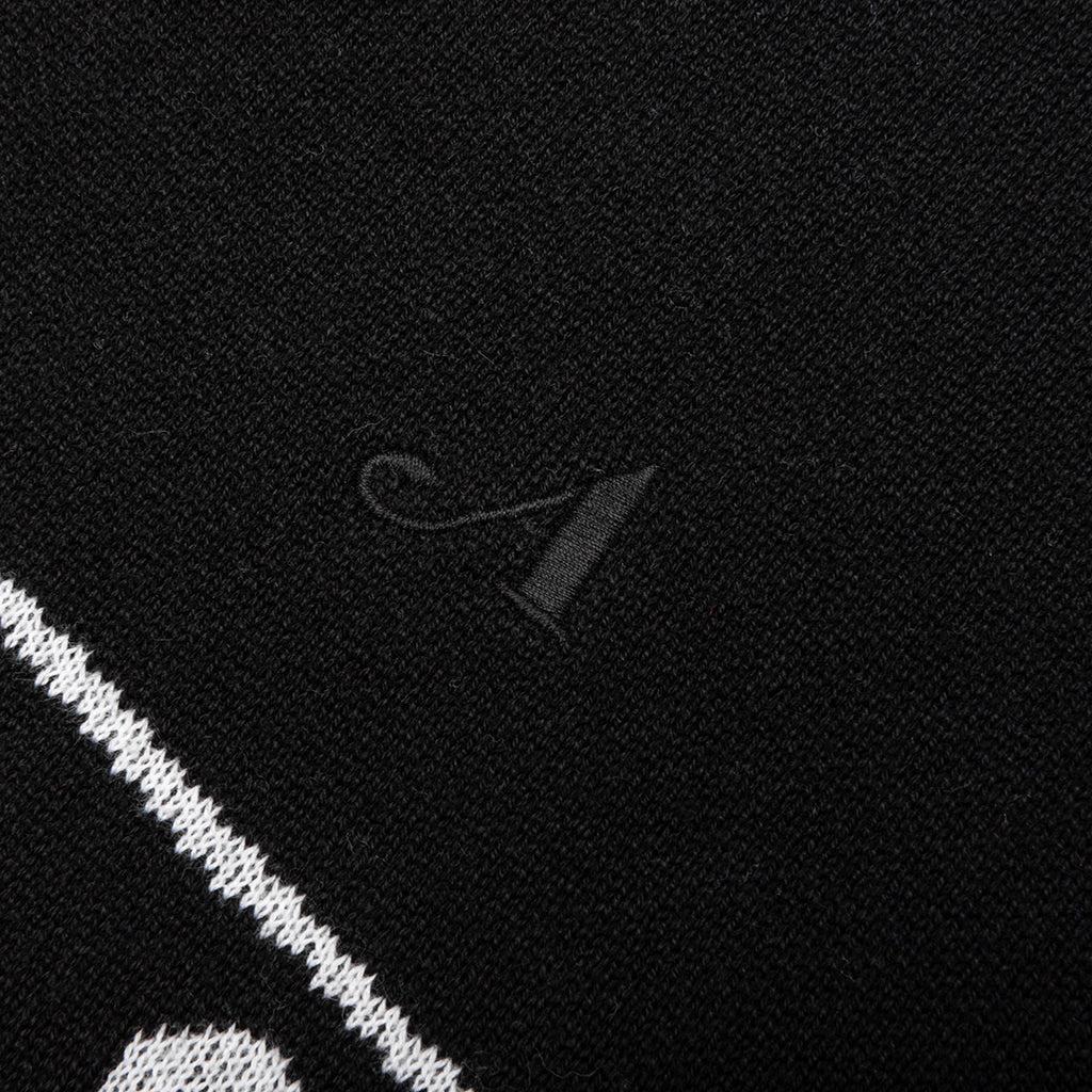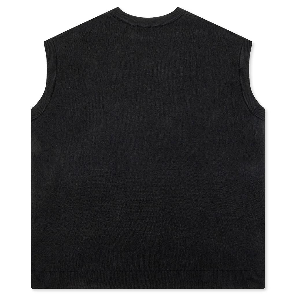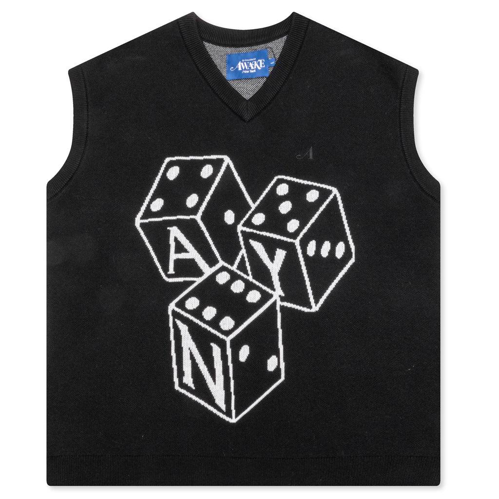 Elevate your look with the Awake NY Dice Vest. Composed of a soft Mohair blend, the vest features an intarsia dice graphic intertwined with Awake NY branding. Some finishing details include ribbed trims, a v-neckline, and an embroidered 'A' logo. Mohair blend V-neckline Ribbed trims Dice graphic Embroidered detail Style No: AWK-SP24-KN006-BLK