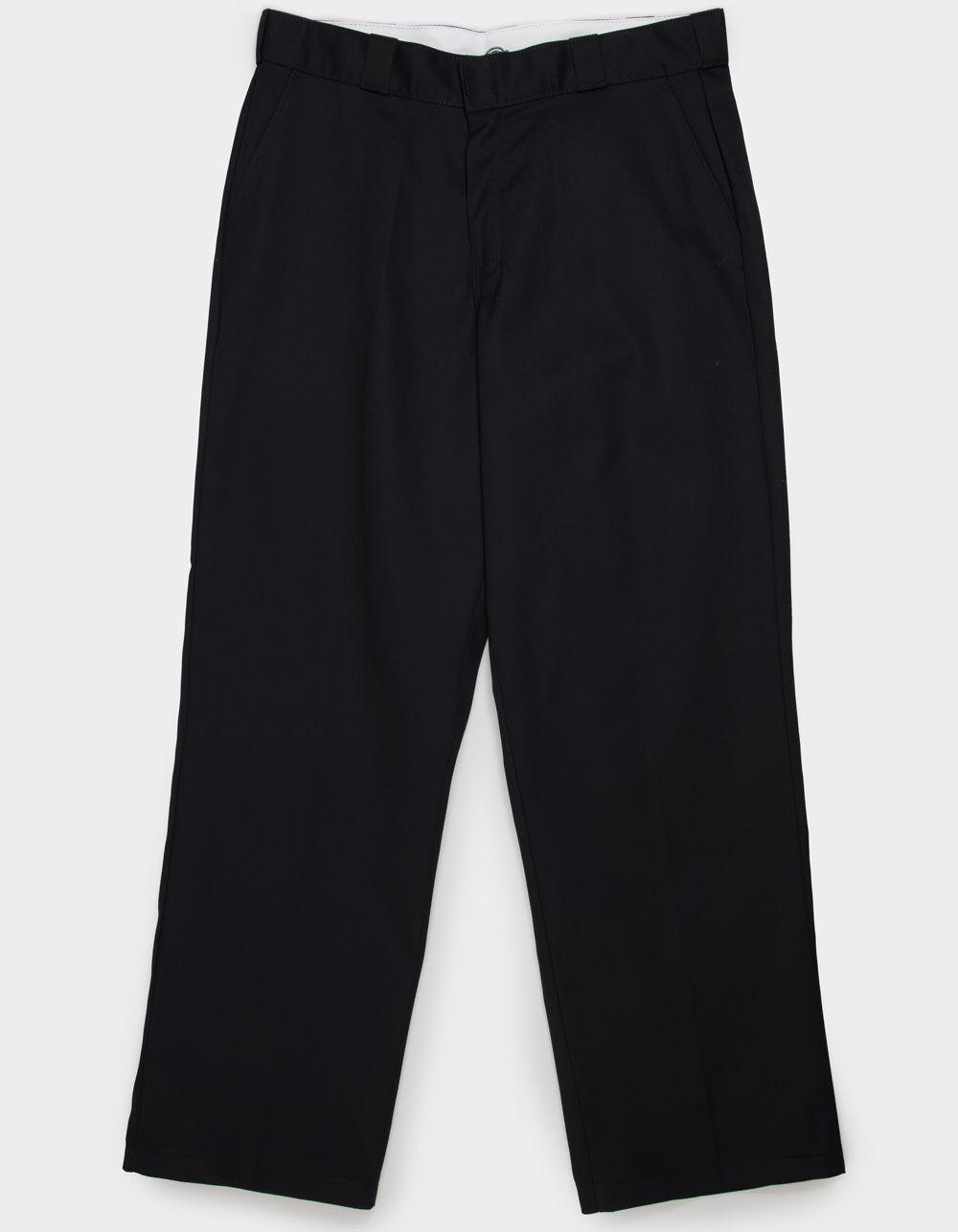 Dickies 877 Loose Fit Work Pants. The 877 Loose Fit Work Pants take everything you love about Dickies' iconic originals and bring it forward with a fresh edge. Inspired by their legendary styles, these work pants are crafted from Dickies' signature durable twill fabric, complete with a wrinkle-resistant, stain-release finish that stands up to the demands of the job. These high waist loose fit work pants offer a roomier fit through the seat and thigh, paired with a versatile straight leg for all-day comfort. Deep front and back pockets keep essentials close, whether you're on the job or off the clock. Utility, comfort, and timeless style: these pants have it all. Sits at waist. Resists wrinkles. Stain release. Loose fit. Approximate leg opening: 18". 65% Polyester 35% Cotton. Machine wash. Imported.