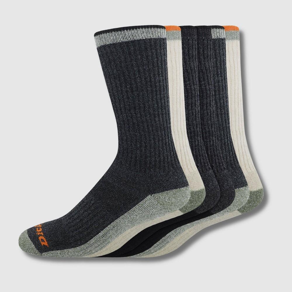 These Dickies 6pk Crew Socks are great for year round work and casual wear. These socks are constructed with soft moisture wicking fibers to keep feet dry and comfortable. Included in the construction of this 6pk Dickies Low Cut Sock is Repreve Polyester that keeps water bottles out of our landfills. The recycled material gives a super soft hand and has a full cushion foot bottom making this sock a dream. Reinforced heel and toe with arch compression make this the perfect sock for working, outdoor activities or lounging on the couch. So, try out this sustainable Dickies Low Cut sock that is loaded with Performance features, and be environmentally friendly at the same time.