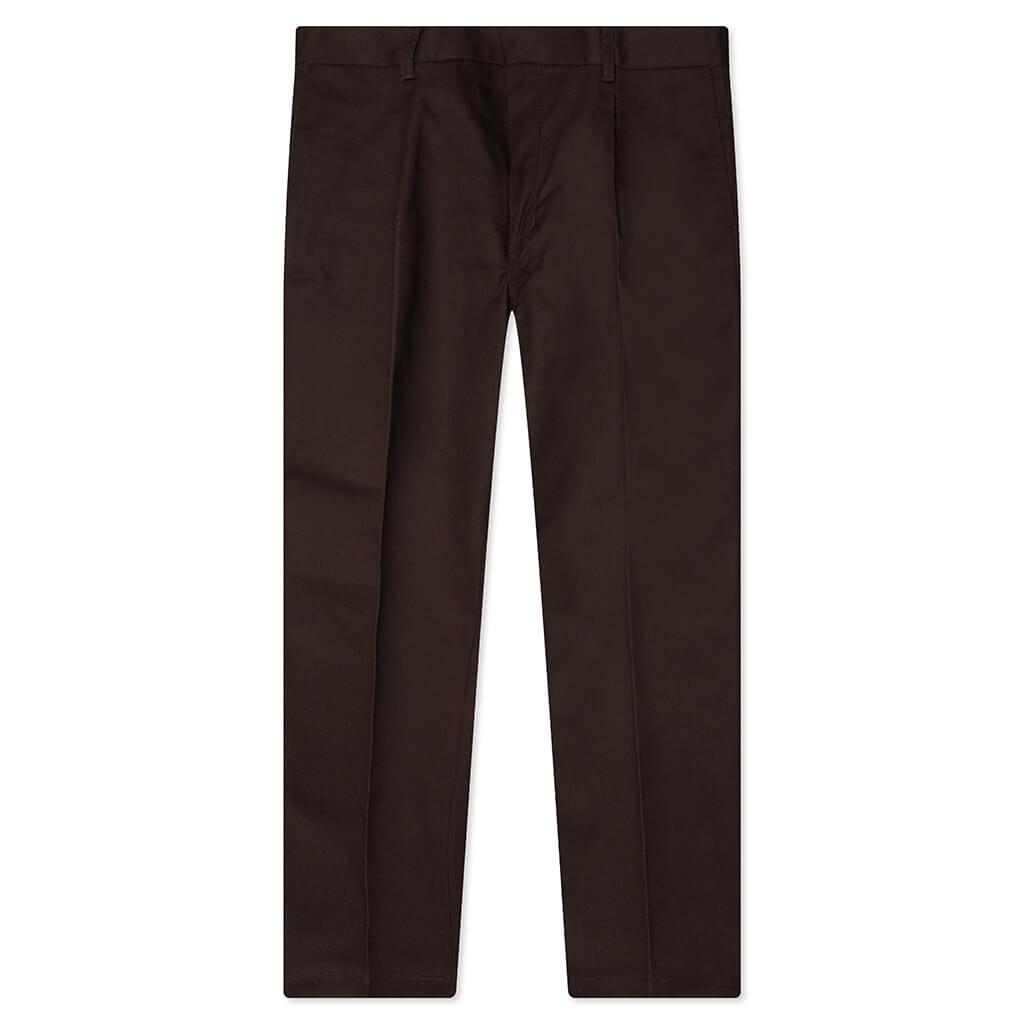 Wacko Maria x Dickies introduces their iteration of the classic Dickies Pleated Trousers. Composed of polyester and cotton, the garment features subtle Wacko Maria branding on the back side under the pocket. The trousers take on the classic silhouette with a four-pocket styling, a zip-fly closure, pleats at the front, and creased legs. 65% Polyester/35% Cotton Belt loops Zip-fly closure Four-pocket design Pleats Front creasing Logo patch Embroidered branding Style No: 24FW-WMP-DC01-BRN