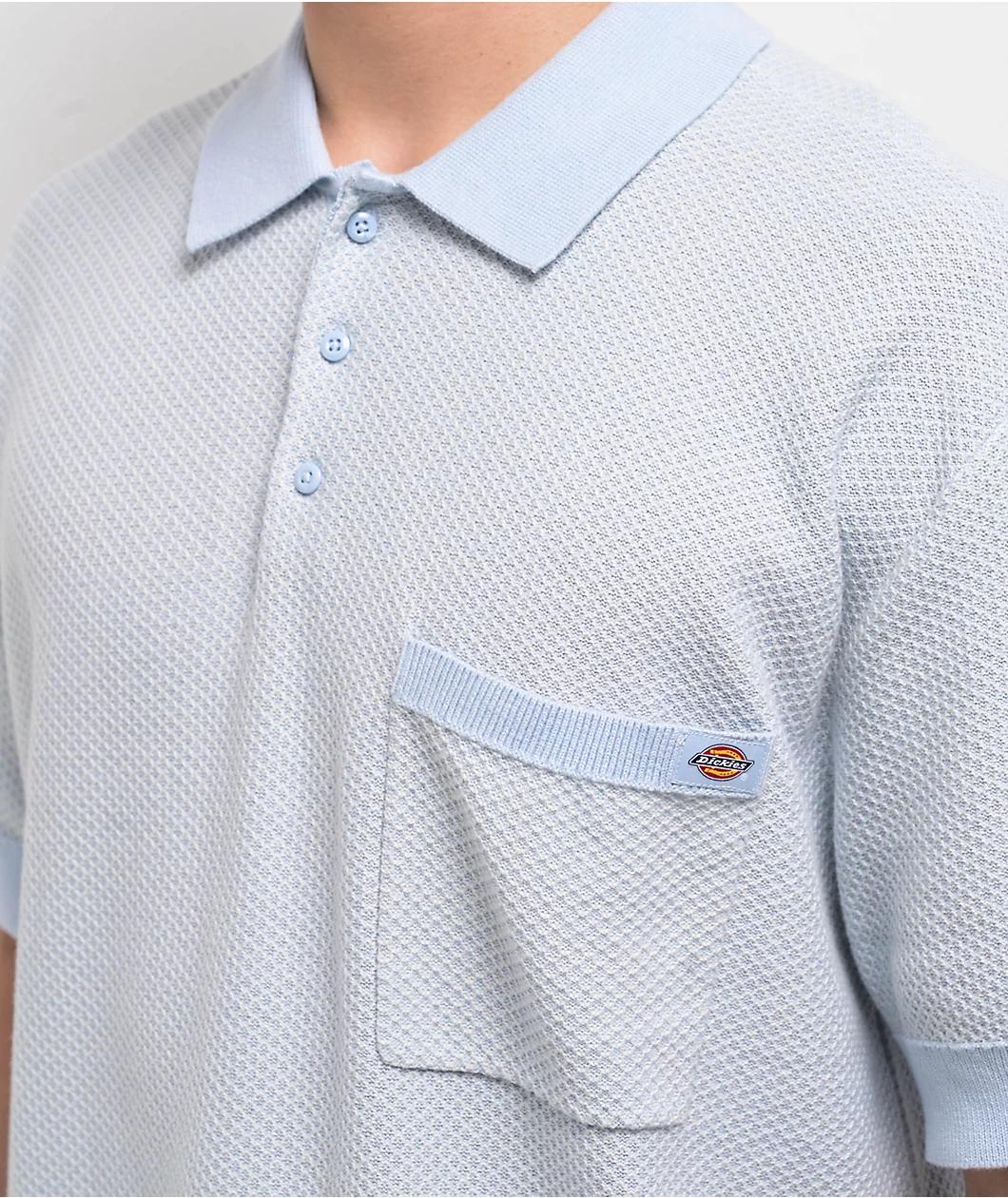 Add a classic yet stylish touch to any outfit with the Rocky knit polo shirt from Dickies. The top features a blue and white knit pattern throughout, as well as a turndown collar and quarter button closure for a traditional look. A patch pocket on th