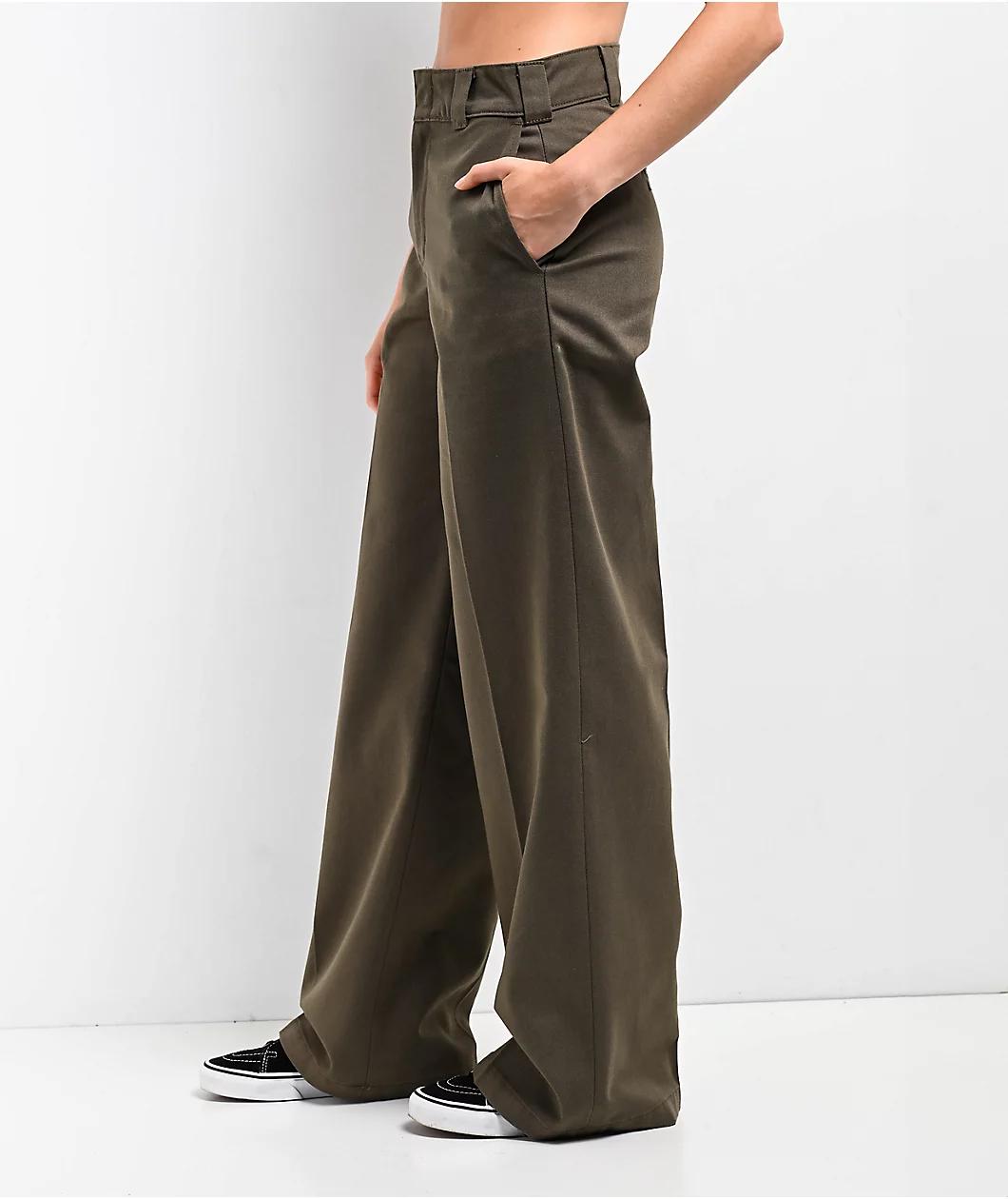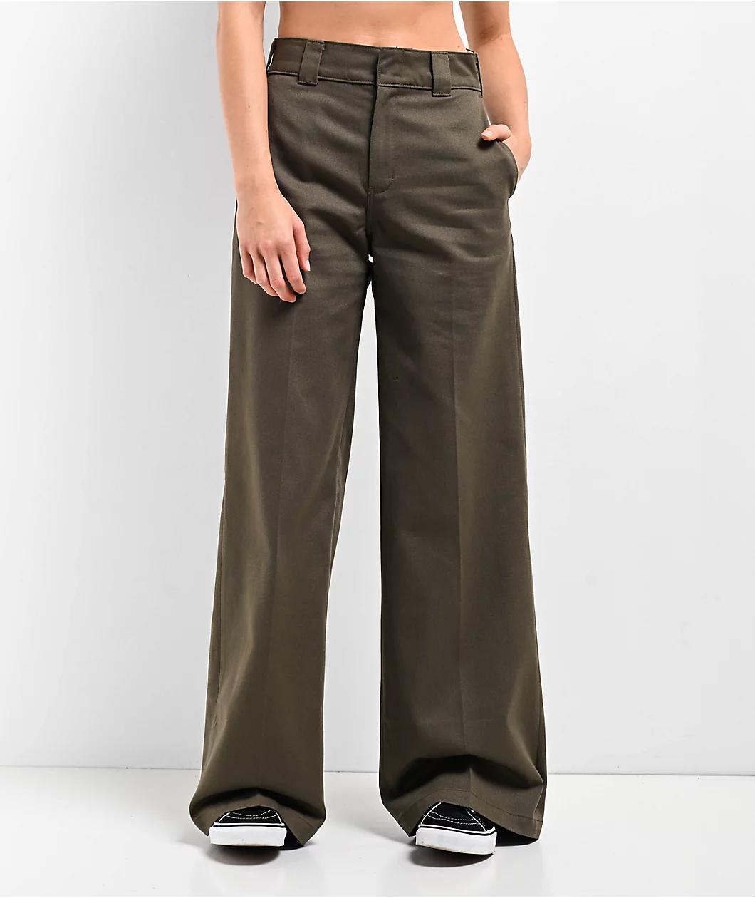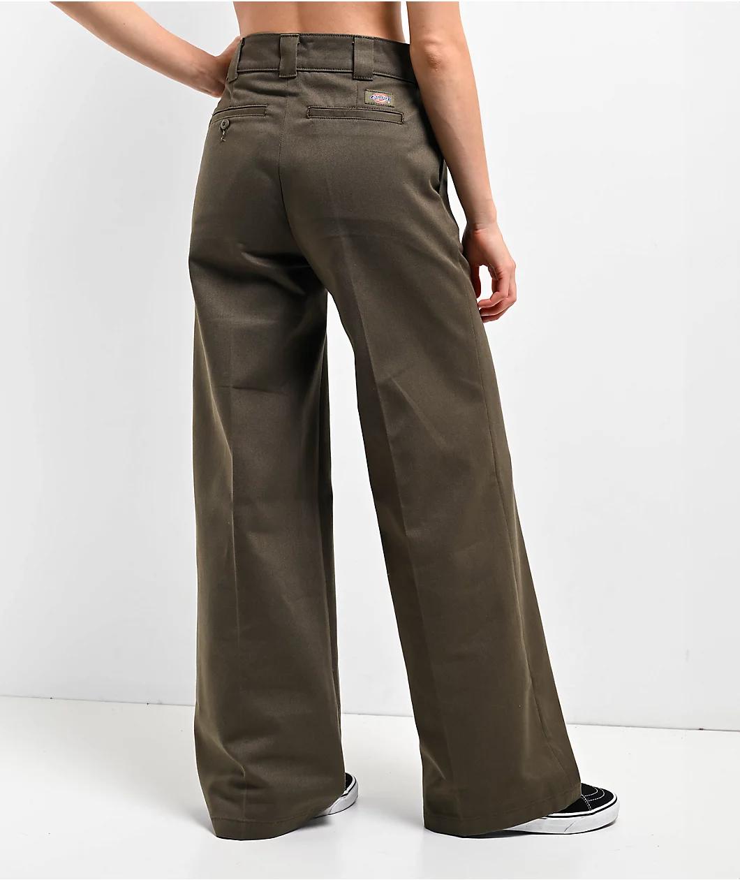 From the workwear aficionados at Dickies, the wide-leg work pants arrive in a "Military" green polyester build to handle whatever the day may have in store. Utilizing a high-rise waist silhouette with a contoured waistband for a snug fit, the flowy b