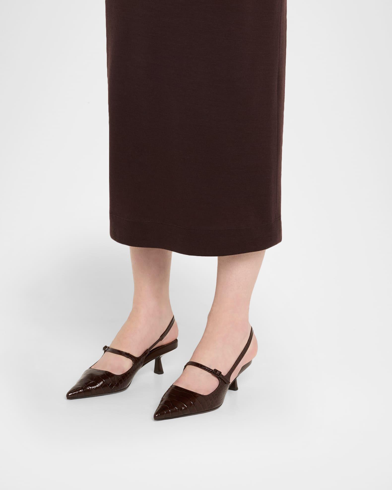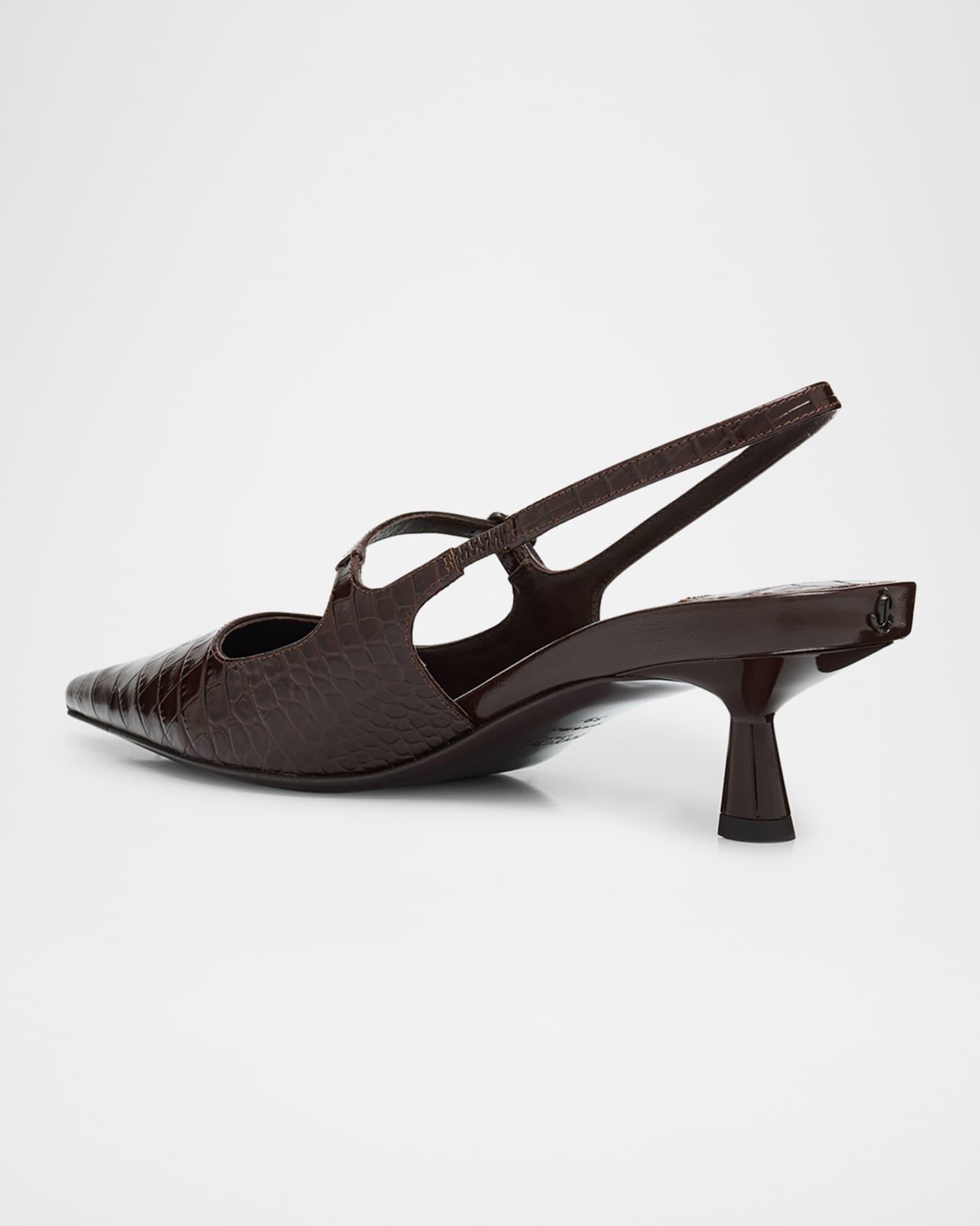 Jimmy Choo "Didi" pumps in croc-embossed leather 1.75 in / 45 mm kitten heel Pointed toe Adjustable Mary Jane vamp strap Elastic slingback strap Made in Italy Size Note: Jimmy Choo runs small. We suggest that you order a half size larger than you typically wear.