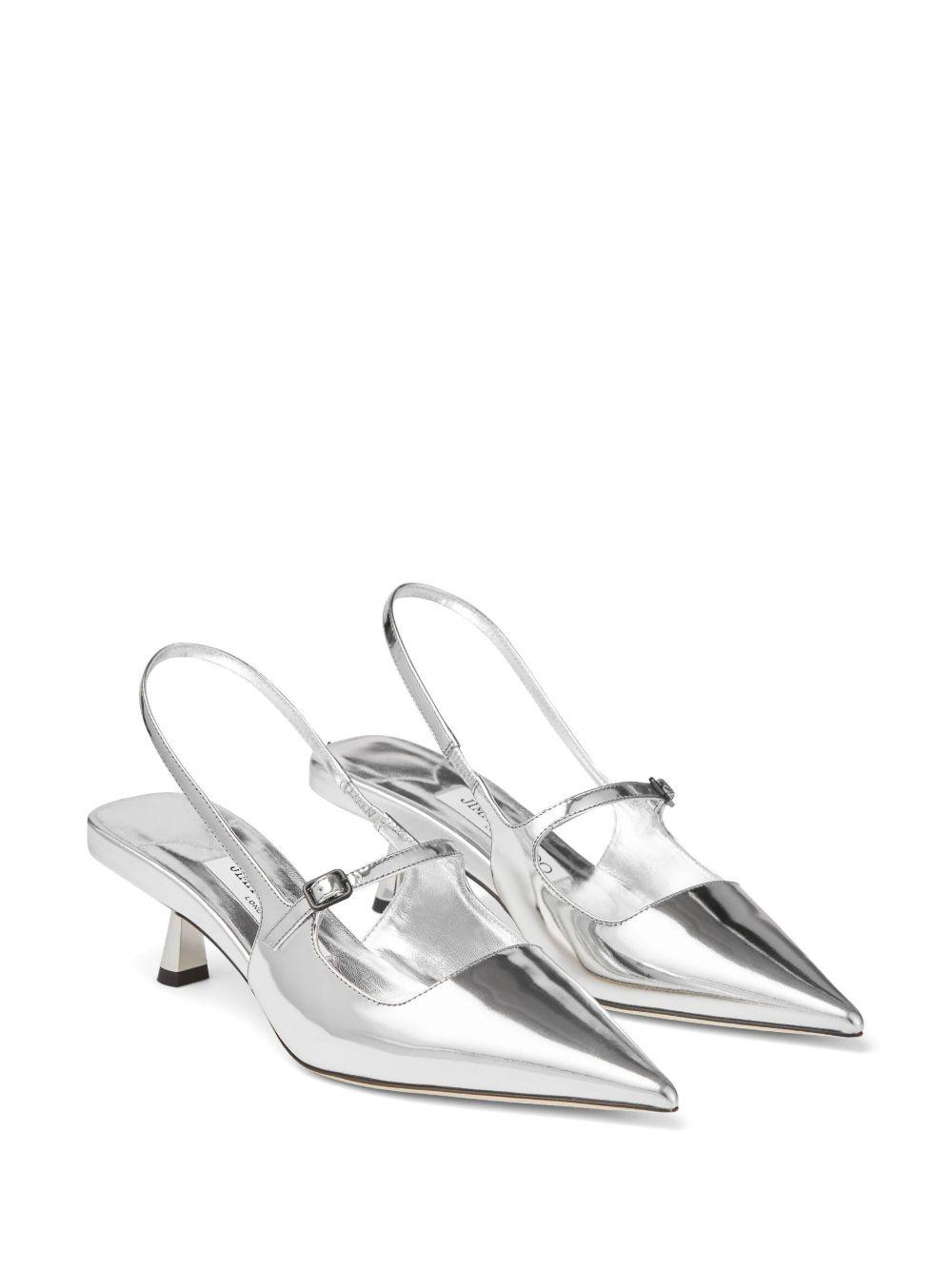Jimmy Choo Didi 45mm patent leather pumps | Silver | silver-tone | calf leather/goatskin | patent finish | metallic effect | pointed toe | buckle-strap fastening | slingback strap | branded leather insole | 45mm kitten heel | Calf Leather/Calf Leather/Goat Skin/Calf Leather | Heeled Pumps | Pumps | Shoes | Women