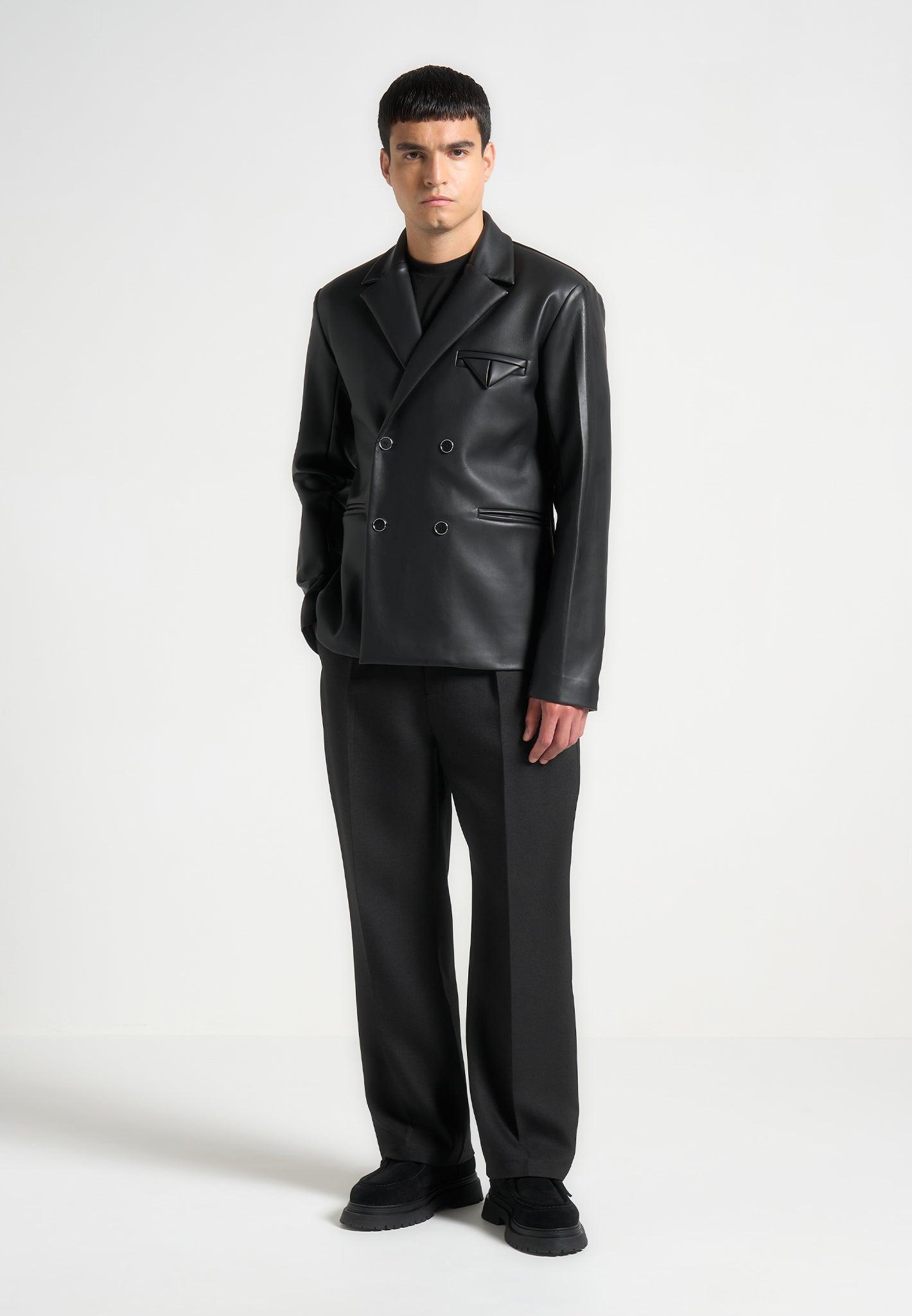 Didier - Double Breasted Leather Suit Jacket - Black Male