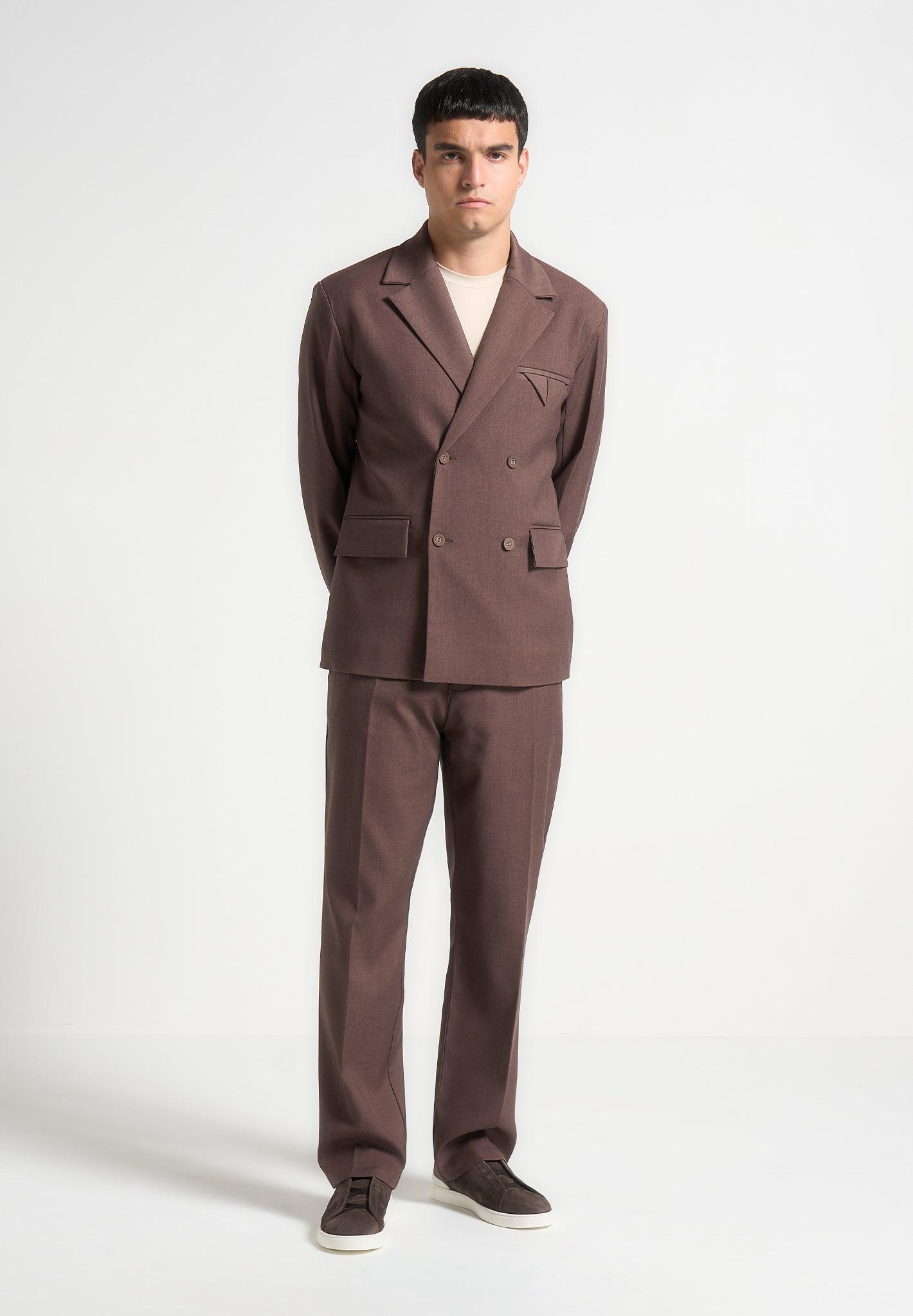Didier - Double Breasted Twill Suit Jacket - Brown Male