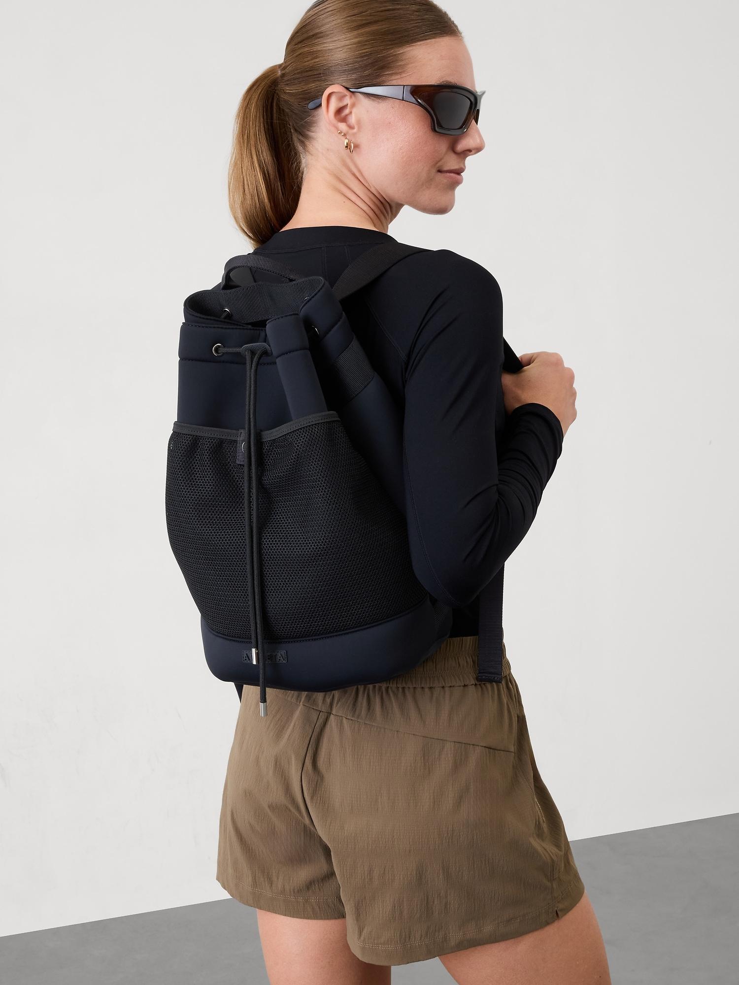 FOR: Stowing stuff for weekly workouts or weekend getaways FEEL: Peak-sleek neoprene bounces wear, tear, and water away effortlessly FAVE: Interior pockets help keep you organized Outer mesh pocket with snap closure :Adjustable straps for a personalized fit #599438