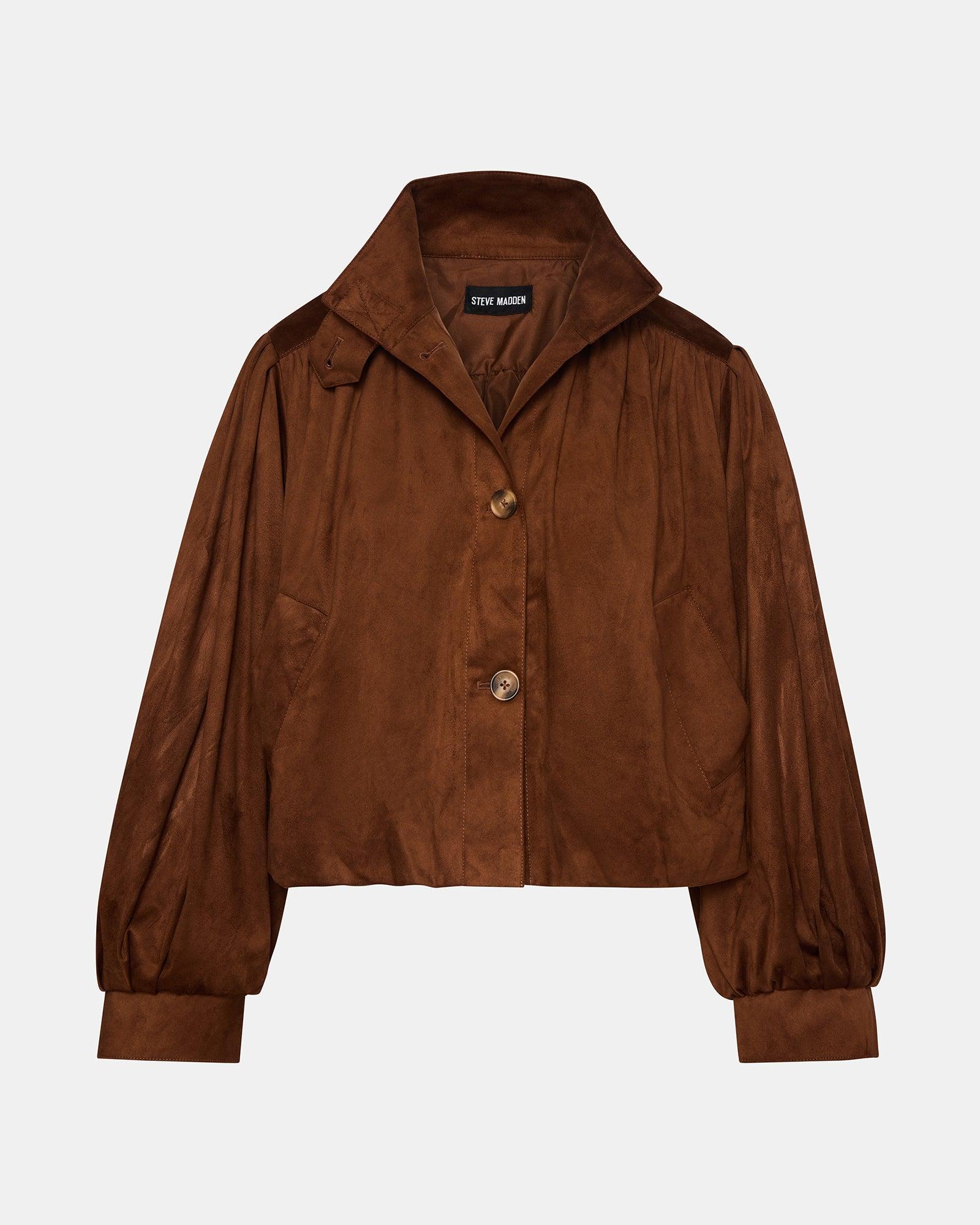 The DIERDRA long-sleeved, collared button-up jacket combines classic tailoring with practical design. Featuring two functional front pockets, it offers convenient storage while maintaining a polished silhouette. Ideal for layering, this jacket delivers both style and utility for a refined, versatile wardrobe staple. Long-sleeved faux suede jacket Button-up closure Collared neckline Two functional front pockets 90% polyester 10% spandex Wipe clean Shop the set here Amber is 5ft 9.5in and is wearing a size small Kate is 5ft 9in and is wearing a size large Imported