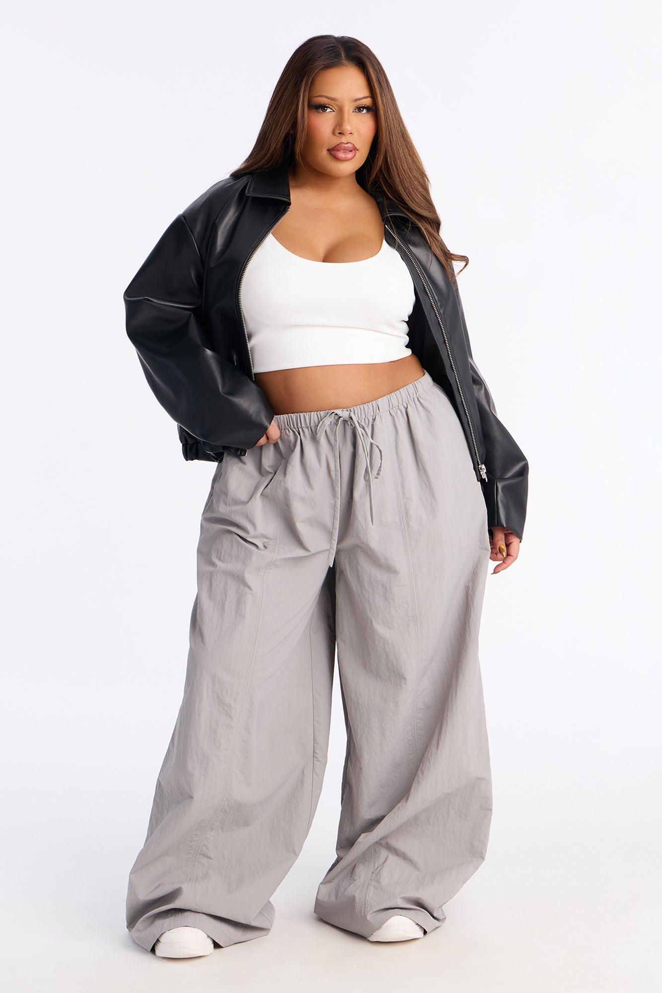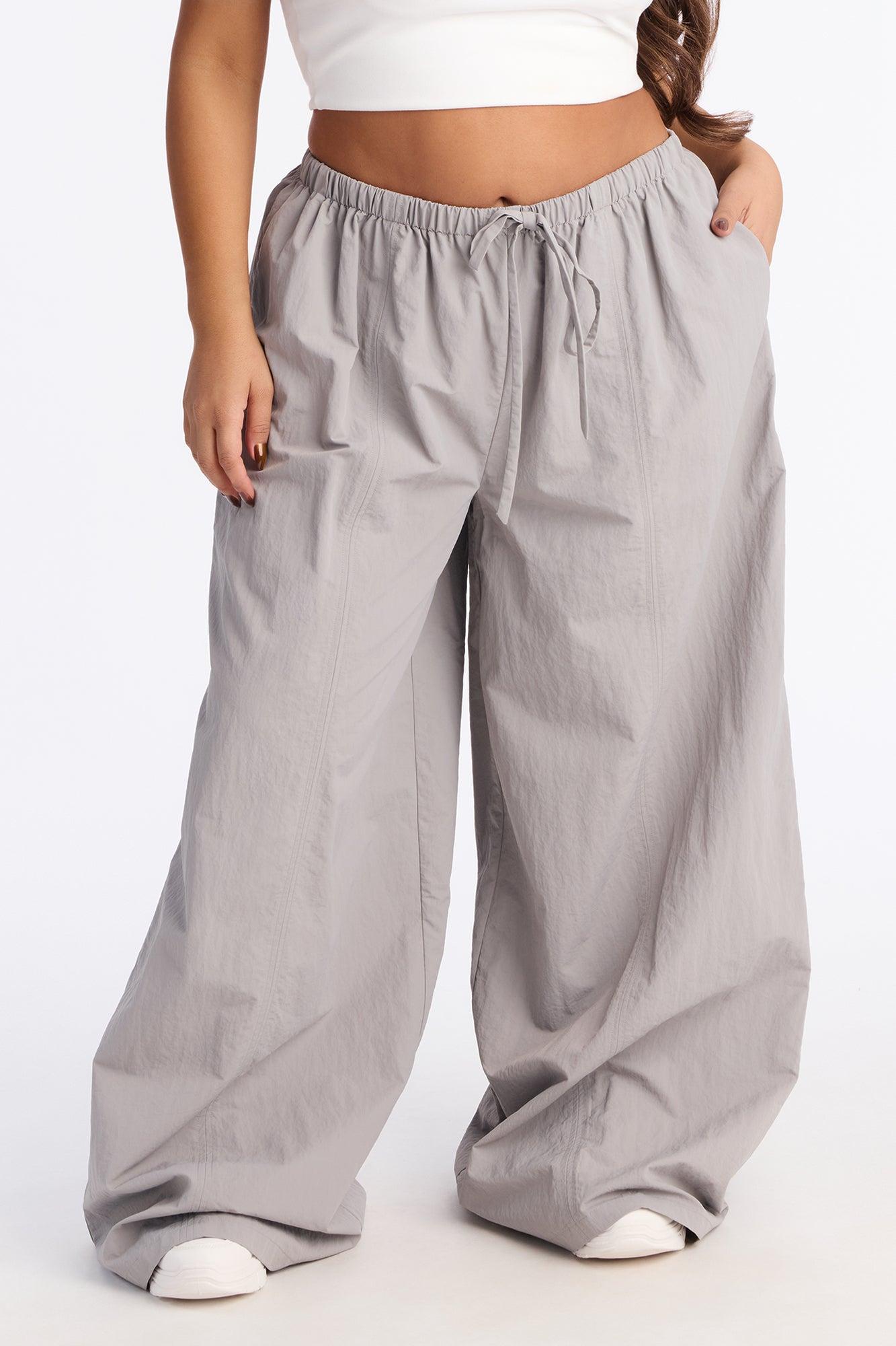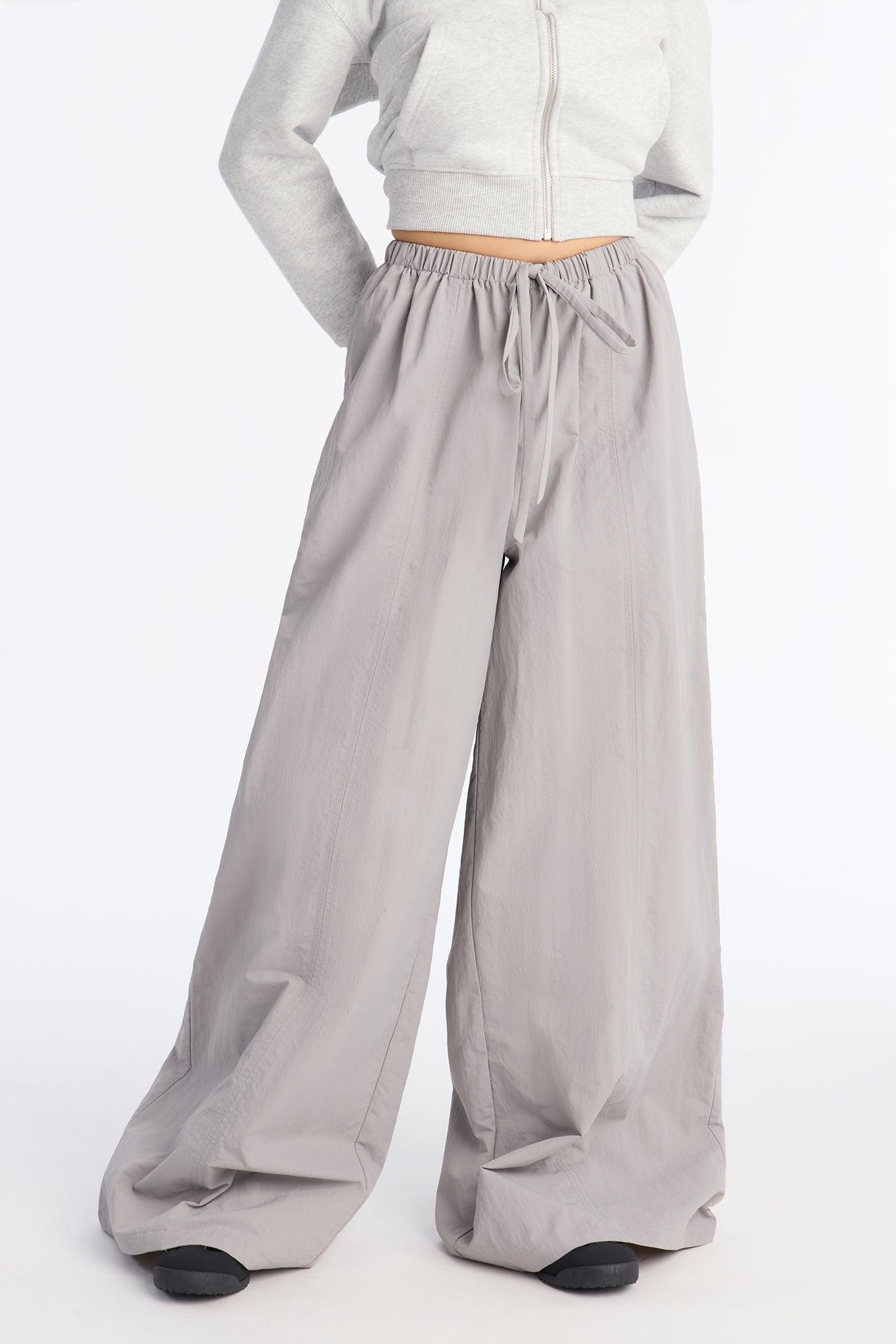 Different Vibe Wide Leg Windbreaker Pant 33″ - Grey Female
