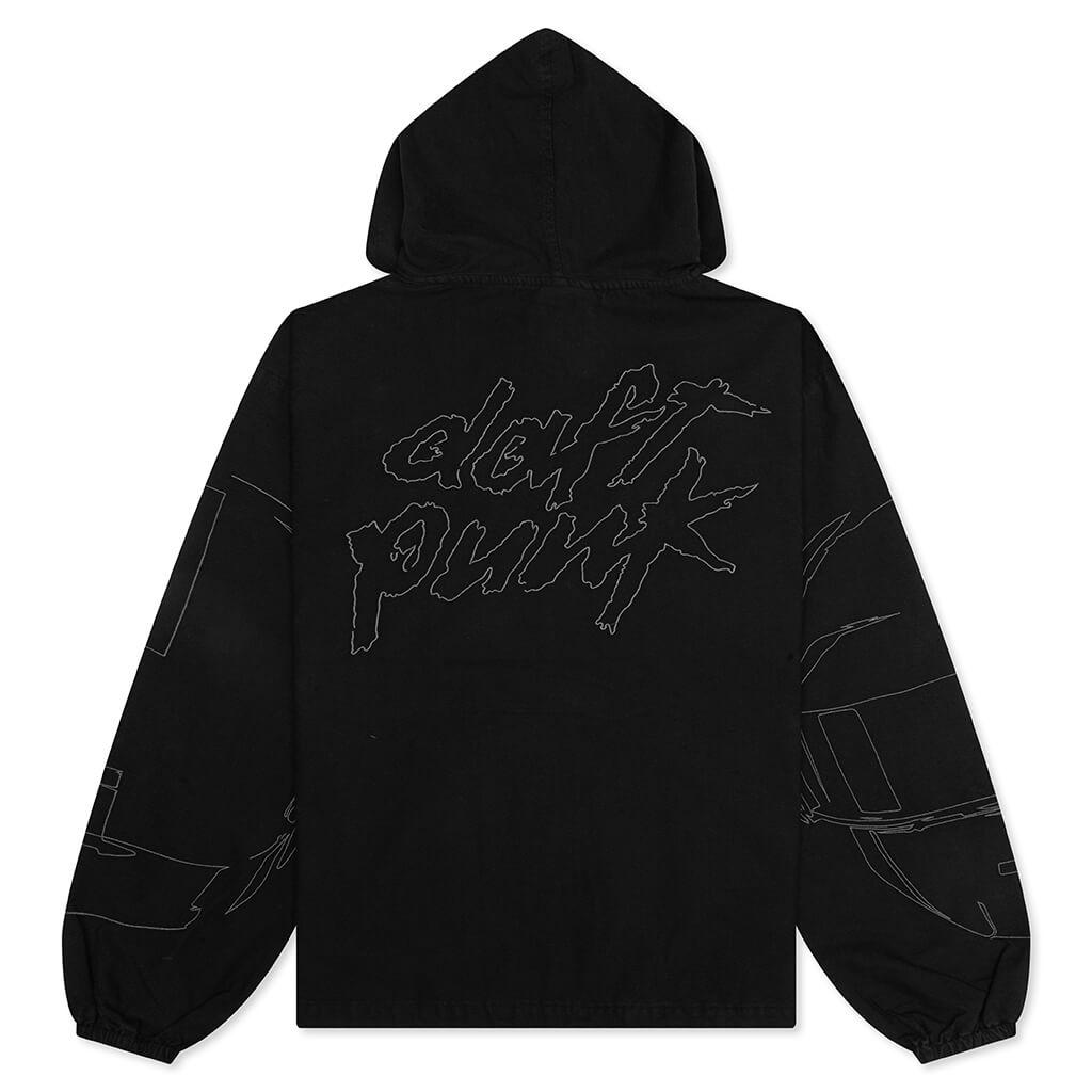 Pleasures pays a tribute to Daft Punk's legacy in their latest collaboration with the Digital Zip Poncho Hoodie. Made from cotton, this hoodie features a poncho-like drape for standout styling. Featuring a full zip closure, elastic cuffs, and a drawstring hem. Decorated with fine embroidery stitches in the shape of the Daft Punk logo and helmet motifs. 100% Cotton Full zip closure Fixed hood Embroidered graphics Kangaroo pocket Elastic cuffs Drawstring hem Style No: P25DP007-BLACK P25DP007 BLAC