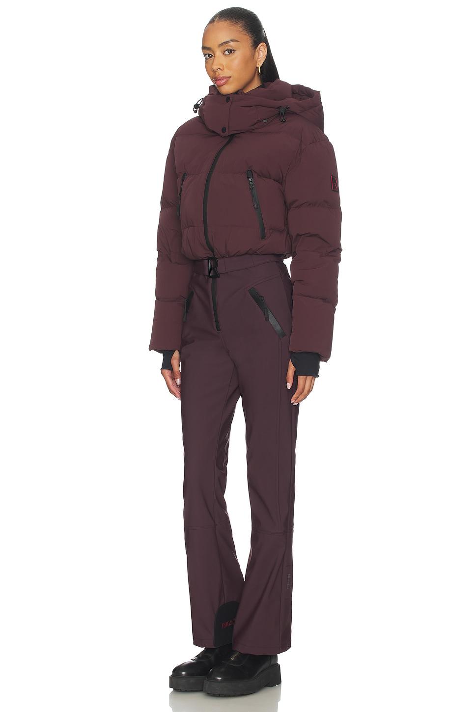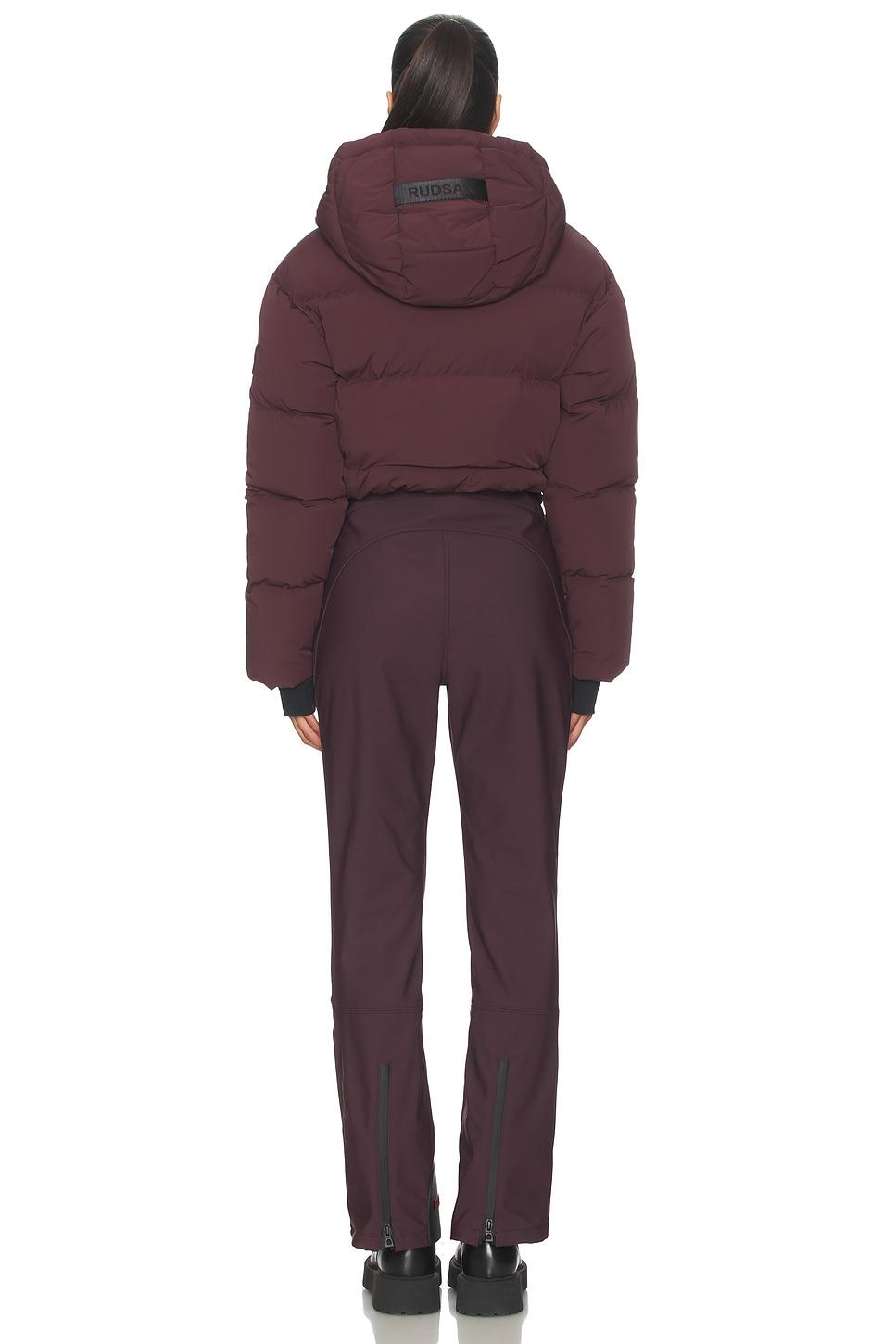 Self: 84% nylon, 16% elastaneBack: 100% polyurethaneFace: 76% nylon, 24% elastaneBack 2: 100% polyesterCoating: 100% thermoplastic polyurethaneLining 1 Face: 84% nylon, 16% elastaneLining 1 Back: 100% polyurethaneLining 2: 100% polyesterFilling: 90% duck down, 10% feather. Made in China. Do not wash or dry clean. Zip up closure. 4-pocket styling with zip closureInner pocket with zip closure. Panelled puffer jacket top. Hook belt closure at waist. Leg opening measures approx 19". Revolve Style No. RUDR-WC11. Manufacturer Style No. 8125600.