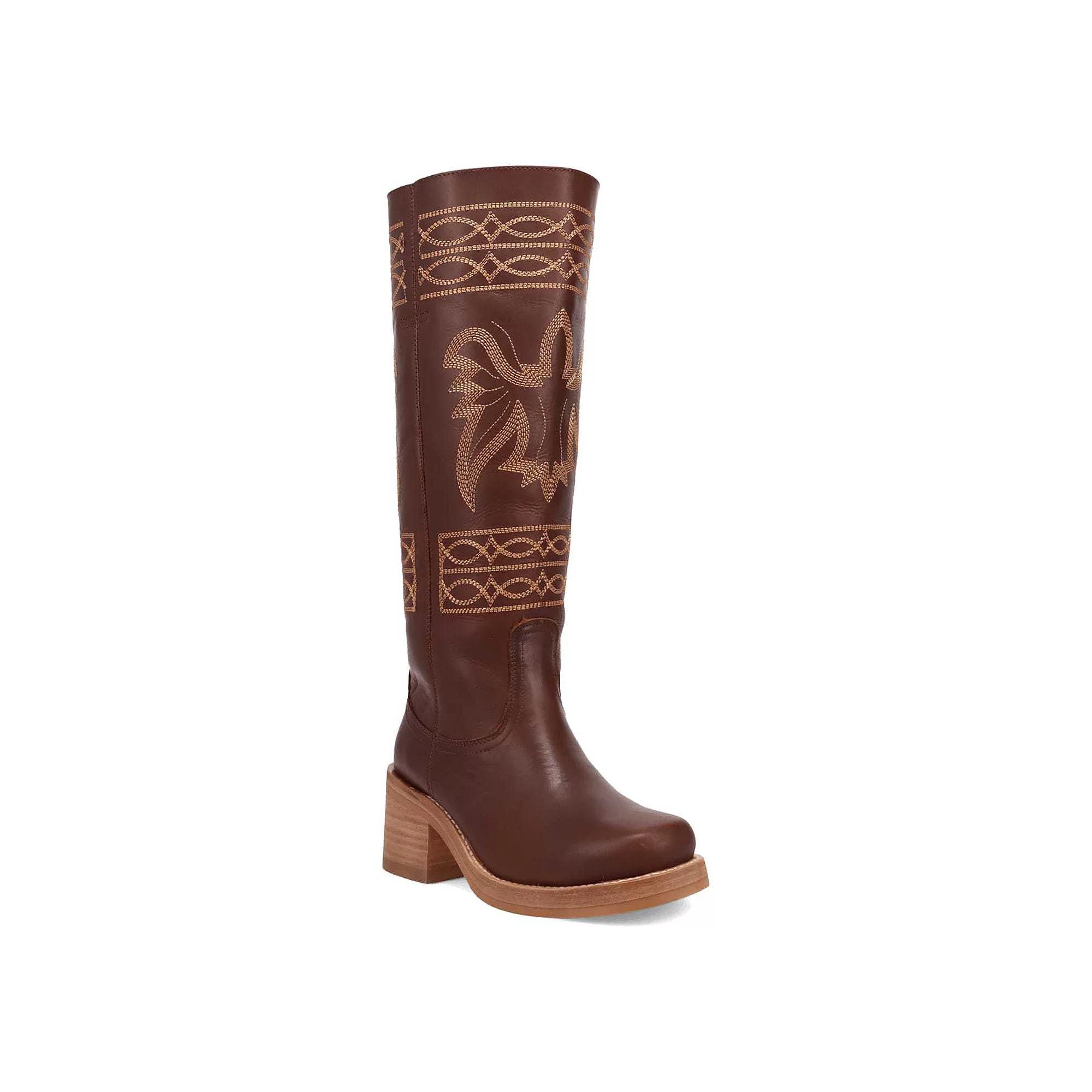 The Dingo Avalon Women's Leather Boots combine rugged sophistication with unmatched comfort, featuring premium leather and a stylish, versatile design that effortlessly complements any outfit. Ideal for adventurous spirits, these boots provide lasting support for all-day wear while making a bold fashion statement. Click this FOOTWEAR GUIDE to find the perfect fit and more! - https://www.kohls.com/feature/shoesizeguide.jsp. FEATURES: 1970s-inspired design blends vintage charm with a Western soul, Intricate Western stitching adds just the right amount of detail, Sleek profile and worn-in feel offer effortless, timeless style, Designed for lasting wear, making it a true wardrobe staple, Knee-high design offers a bold, stylish look with added coverage. DETAILS: Leather upper, Polyester lining, Foam midsole, TPR rubber outsole, Round toe, Pull-on, Foam footbed, 2.5-in. heel height, 16-in. boot shaft height, 12-in. boot shaft circumference, Spot clean, Imported,. WARNING: THIS PRODUCT CAN EXPOSE YOU TO CHEMICALS INCLUDING LEAD WHICH IS KNOWN TO THE STATE OF CALIFORNIA TO CAUSE CANCER, BIRTH DEFECTS OR REPRODUCTIVE HARM AND BUTYL BENZYL PHTHALATE (BBP) WHICH IS KNOWN TO THE STATE OF CALIFORNIA TO CAUSE BIRTH DEFECTS OR OTHER REPRODUCTIVE HARM. FOR MORE INFORMATION GO TO www.P65Warnings.ca.gov - https://www.p65warnings.ca.gov/. Size: 6.5. Color: Brown. Gender: female. Age Group: adult.