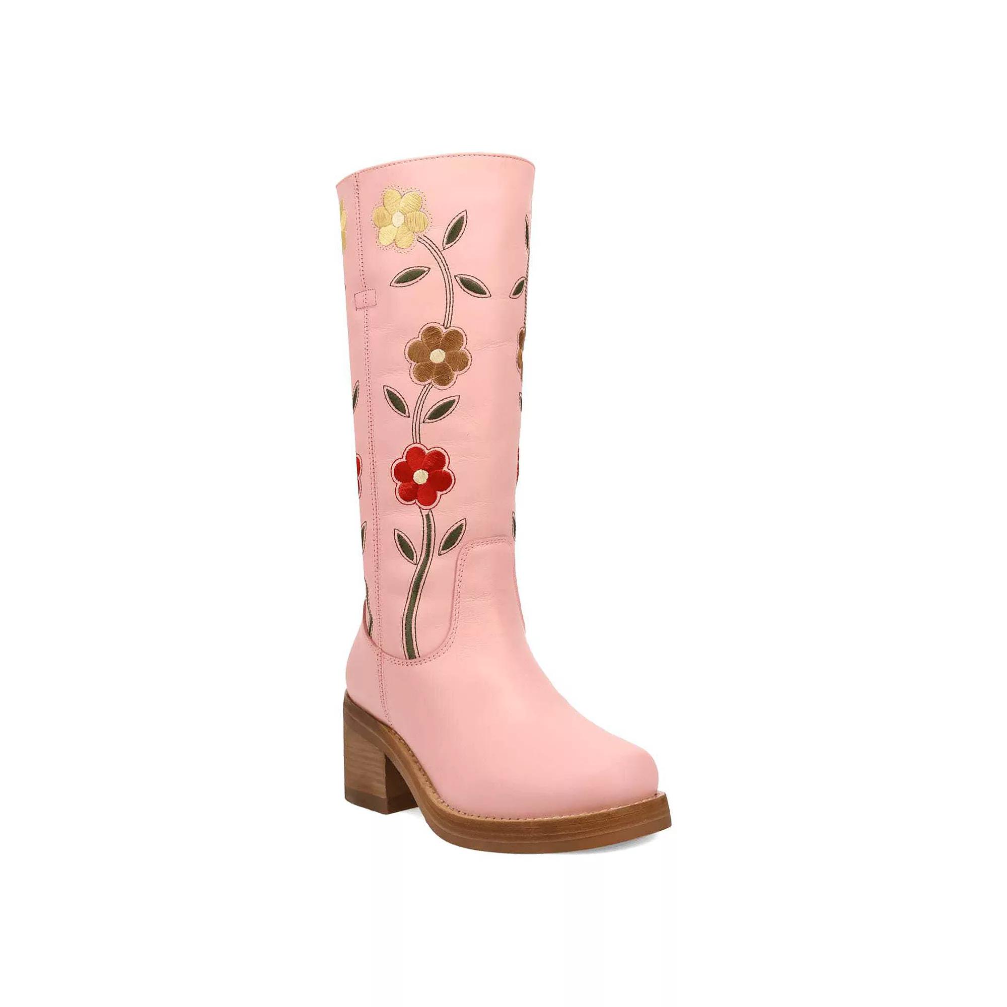 Step into a world where nostalgia dances with modern charm in these whimsical boots. With delicate floral stitching and a silhouette that celebrates femininity, they’re perfect for those who believe every adventure deserves a hint of vintage romance. Size: 9 Med. Color: Pink. Gender: female. Age Group: adult. Material: LEATHER.
