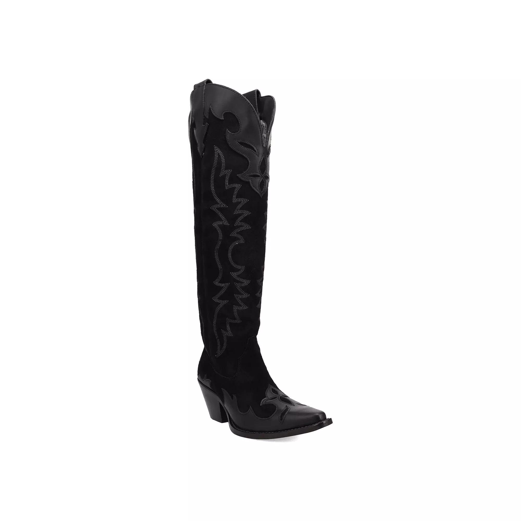 Unleash your inner diva with these show-stopping ankle boots from Dingo, designed for the bold and unapologetic. Featuring a stunning combination of rich suede and sleek leather accents, these boots effortlessly blend softness and striking style, making every outfit a moment to remember. Click this FOOTWEAR GUIDE to find the perfect fit and more! - https://www.kohls.com/feature/shoesizeguide.jsp. FEATURES: Crafted in rich suede with sleek leather accents, Knee high shaft. DETAILS: Suede upper, Polyester lining, TPR rubber outsole, Pointed toe, Pull-on, Foam footbed, midsole, 2-in. heel height, 18-in. shaft height, 16-in. boot shaft circumference, Spot clean, Imported,. WARNING: THIS PRODUCT CAN EXPOSE YOU TO CHEMICALS INCLUDING LEAD WHICH IS KNOWN TO THE STATE OF CALIFORNIA TO CAUSE CANCER, BIRTH DEFECTS OR REPRODUCTIVE HARM AND BUTYL BENZYL PHTHALATE (BBP) WHICH IS KNOWN TO THE STATE OF CALIFORNIA TO CAUSE BIRTH DEFECTS OR OTHER REPRODUCTIVE HARM. For more information go to www.P65Warnings.ca.gov - https://www.p65warnings.ca.gov/. Size: 7.5. Color: Black. Gender: female. Age Group: adult.
