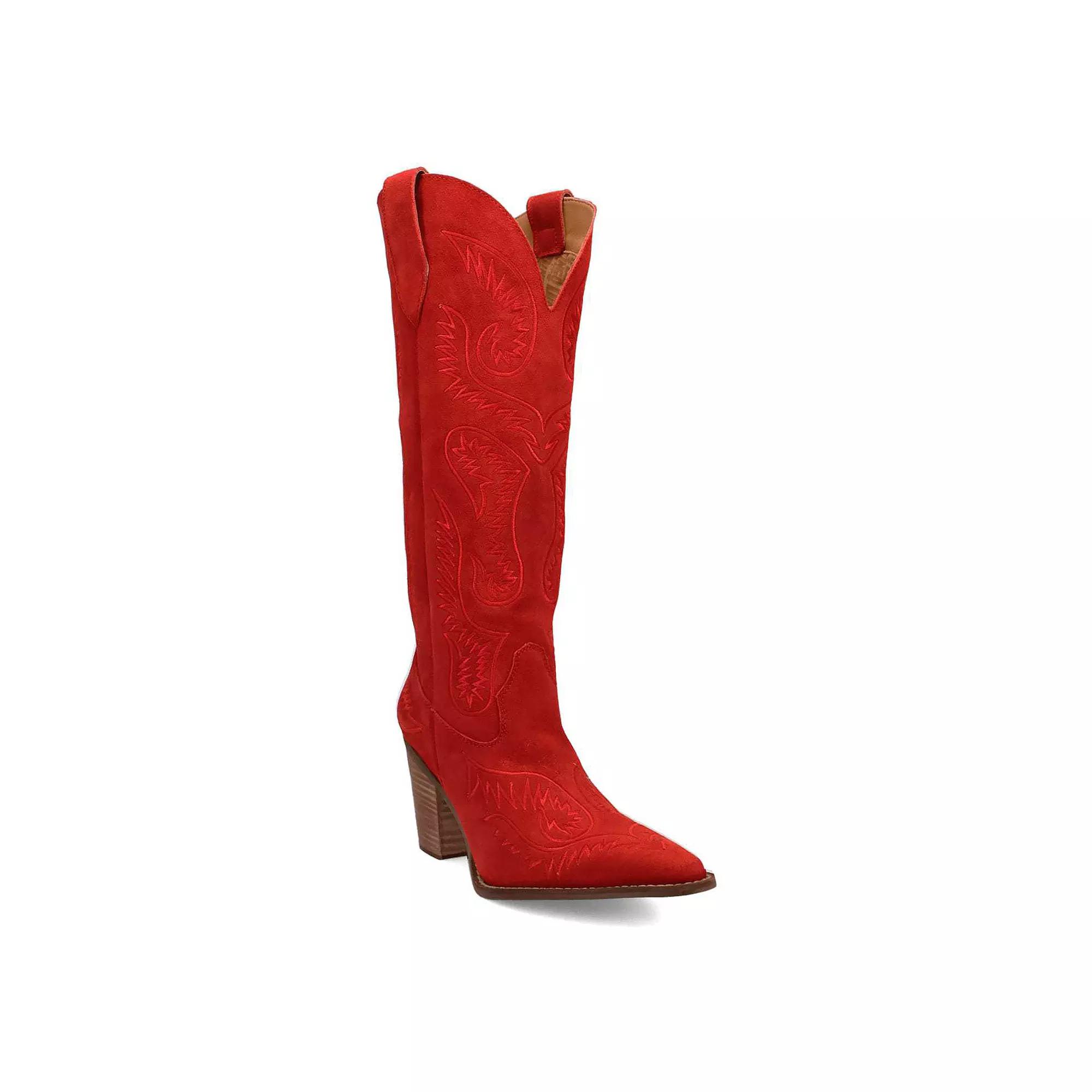 Embodying a seamless blend of artistry and sophistication, Dingo's Evita ankle boots showcase exquisite monochromatic Western stitching that speaks to both quality and timeless style. Perfect for any occasion, these boots effortlessly enhance your wardrobe while providing a durable yet chic option for everyday wear. Click this FOOTWEAR GUIDE to find the perfect fit and more! - https://www.kohls.com/feature/shoesizeguide.jsp. FEATURES: Meticulously executed monochromatic Western stitching, Tall shaft. DETAILS: Suede upper, Polyester lining, TPR rubber outsole, Pointed toe, Pull-on, Foam footbed, midsole, 2.75-in. heel height, 16-in. shaft height, 12-in. boot shaft circumference, Spot clean, Imported,. WARNING: THIS PRODUCT CAN EXPOSE YOU TO CHEMICALS INCLUDING LEAD WHICH IS KNOWN TO THE STATE OF CALIFORNIA TO CAUSE CANCER, BIRTH DEFECTS OR REPRODUCTIVE HARM AND BUTYL BENZYL PHTHALATE (BBP) WHICH IS KNOWN TO THE STATE OF CALIFORNIA TO CAUSE BIRTH DEFECTS OR OTHER REPRODUCTIVE HARM. For more information go to www.P65Warnings.ca.gov - https://www.p65warnings.ca.gov/. Size: 6. Color: Red. Gender: female. Age Group: adult.