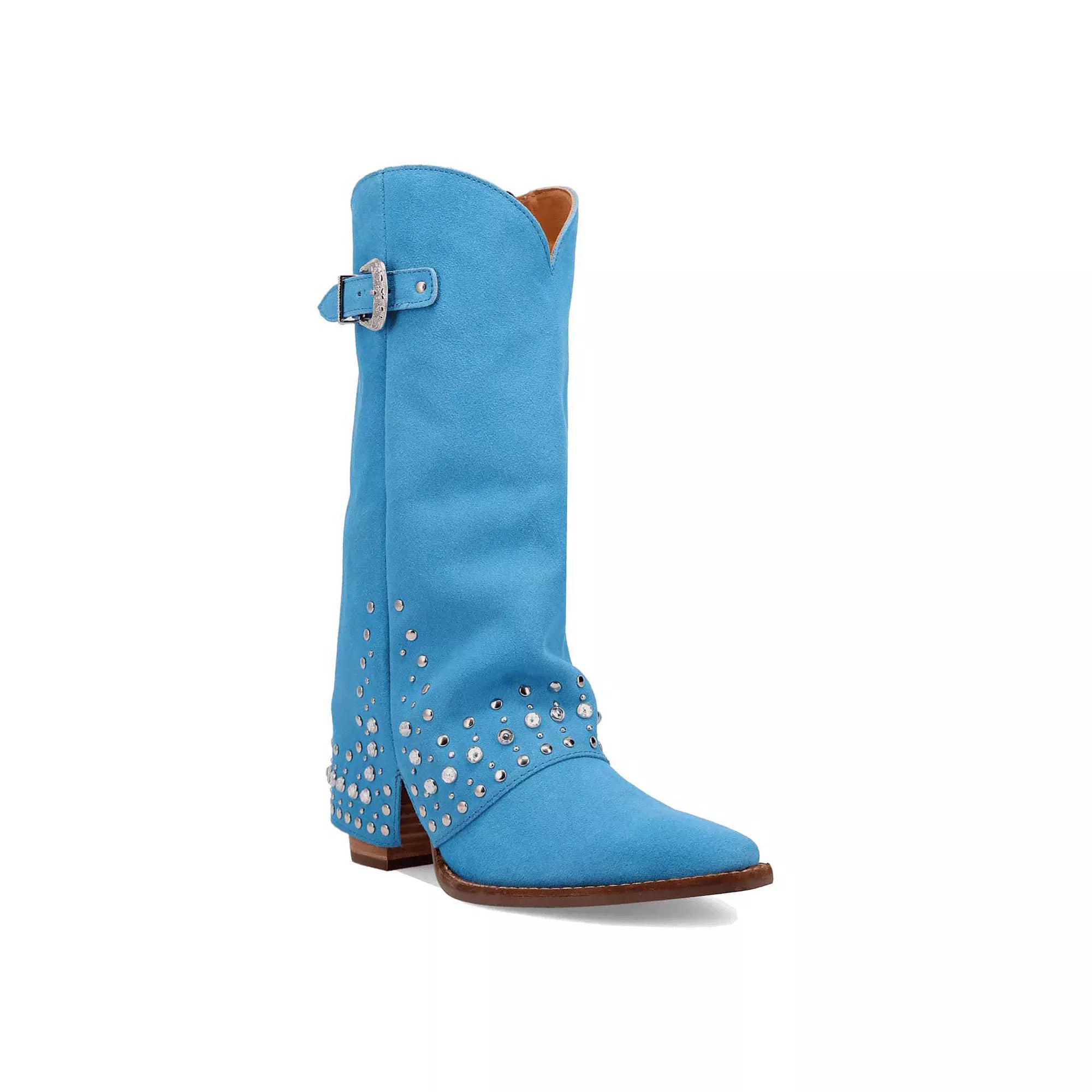 Unleash your inner diva with Dingo's Howdy Honey boots, where boldness meets sweet charm. Adorned with dazzling rhinestones and a chic cuff detail, these boots are perfect for elevating any outfit, whether you're headed to a night out or just adding some flair to your everyday style. Click this FOOTWEAR GUIDE to find the perfect fit and more! - https://www.kohls.com/feature/shoesizeguide.jsp. FEATURES: Full-glam energy with head-to-toe rhinestones, Chic cuff detail and statement buckle for added flair. DETAILS: Pointed toe, Zipper closure, Treaded outsole, 2.75 in. heel. FIT & SIZE: Mid-calf boot shaft, 11" boot shaft height, 12" boot shaft circumference. MATERIAL & CARE: Suede upper, Polyester lining, Foam footbed, TPR outsole, Spot clean,. WARNING: Cancer and Reproductive Harm - This product can expose you to chemicals including lead which is known to the state of California to cause cancer, birth defects or reproductive harm and butyl benzyl phthalate (bbp) which is known to the state of California to cause birth defects or other reproductive harm. For more information go to www.P65Warnings.ca.gov. Size: 6.5. Color: Blue. Gender: female. Age Group: adult.