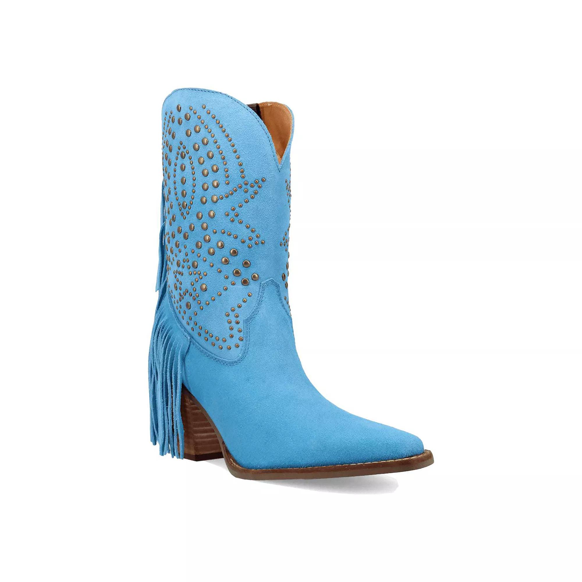 Embrace your inner star with these stunning ankle boots from Dingo that blend edgy studs and shimmering stars, complemented by playful fringe cascading over the heel. Ideal for those who crave to turn heads, these bold designs effortlessly elevate any outfit, making every entrance unforgettable. Size: 6.5. Color: Blue. Gender: female. Age Group: adult. Material: SUEDE.