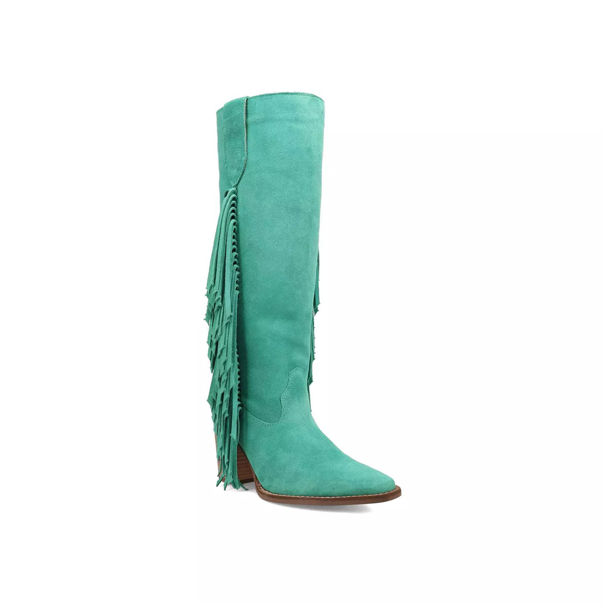 Unleash your adventurous spirit with these eye-catching boots from Dingo. With playful fringe and a design that's destined to dazzle, they'll be the statement piece in any outfit, perfect for turning heads and making memories wherever you go. Click this FOOTWEAR GUIDE to find the perfect fit and more! - https://www.kohls.com/feature/shoesizeguide.jsp. FEATURES: Playful fringe and eye-catching design, Tall shaft. DETAILS: Suede upper, Polyester lining, TPR rubber outsole, Pointed toe, Pull-on, Foam footbed, midsole, 2.75-in. heel height, 16-in. shaft height, 12-in. boot shaft circumference, Spot clean, Imported,. WARNING: THIS PRODUCT CAN EXPOSE YOU TO CHEMICALS INCLUDING LEAD WHICH IS KNOWN TO THE STATE OF CALIFORNIA TO CAUSE CANCER, BIRTH DEFECTS OR REPRODUCTIVE HARM AND BUTYL BENZYL PHTHALATE (BBP) WHICH IS KNOWN TO THE STATE OF CALIFORNIA TO CAUSE BIRTH DEFECTS OR OTHER REPRODUCTIVE HARM. For more information go to www.P65Warnings.ca.gov - https://www.p65warnings.ca.gov/. Size: 11. Color: Green. Gender: female. Age Group: adult.